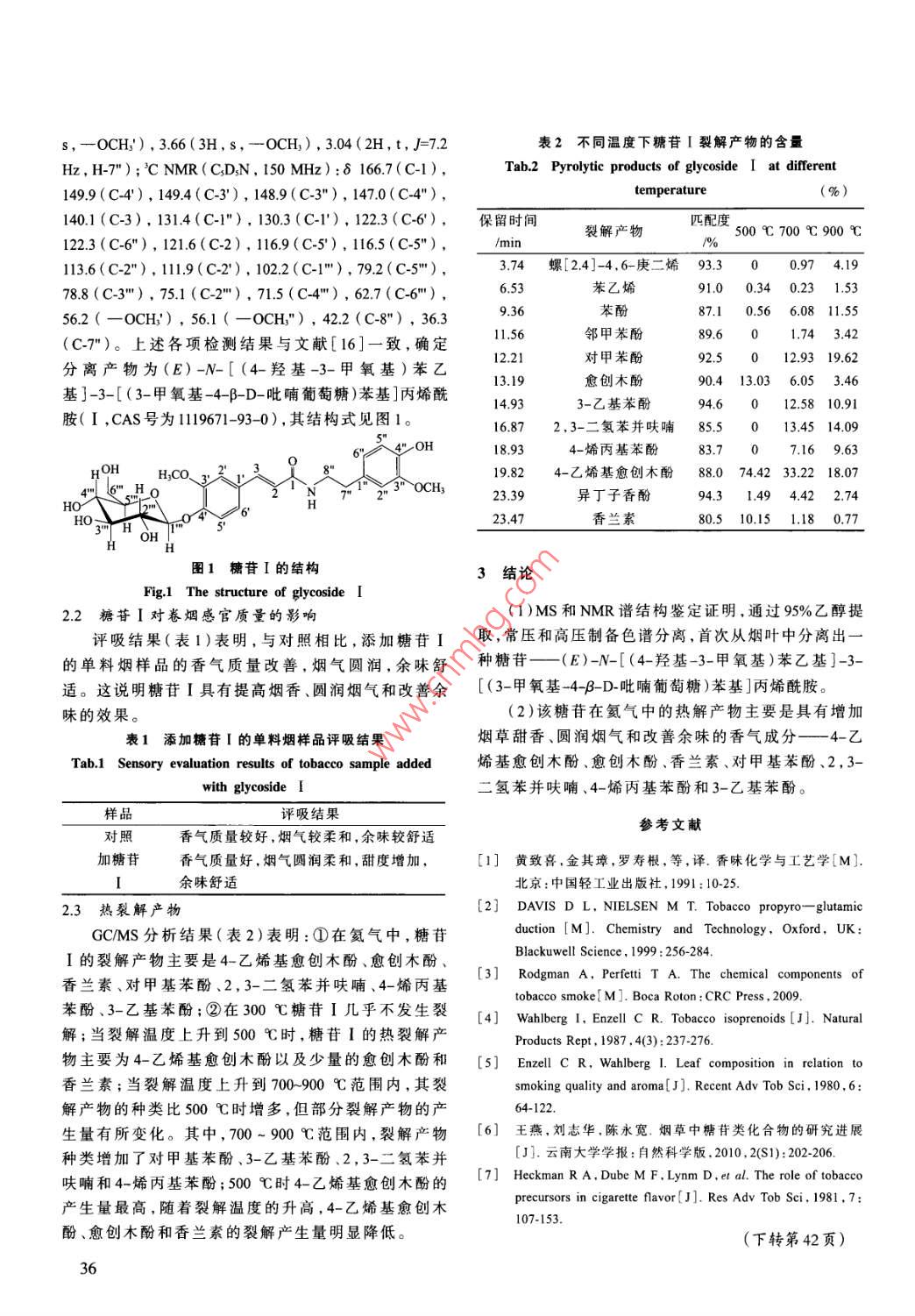 煙草中一種糖苷的分離鑒定及其熱解產(chǎn)物