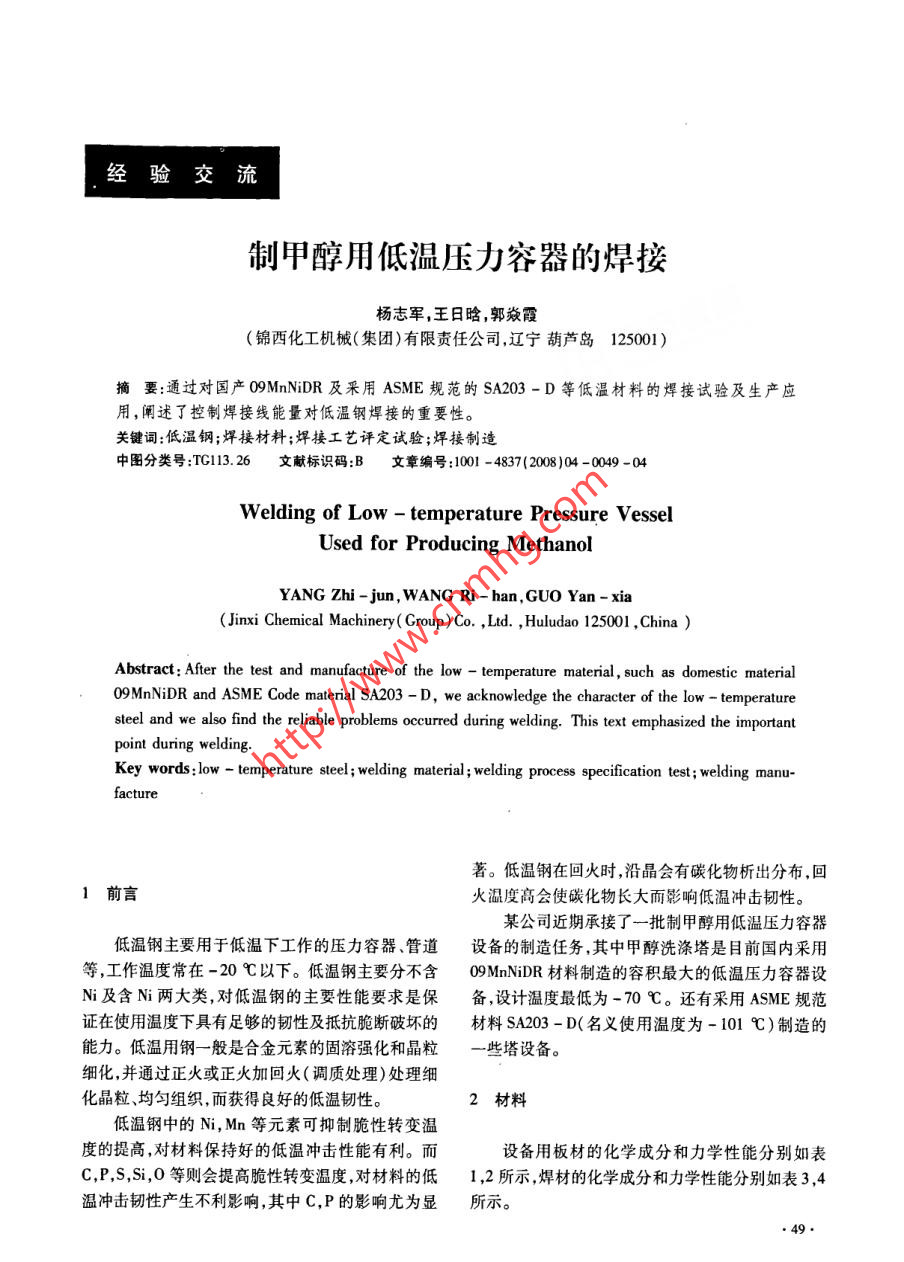 制甲醇用低溫壓力容器的焊接