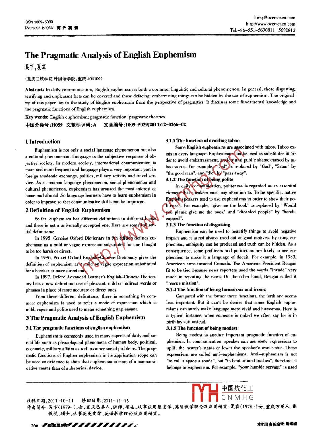 The Pragmatic Analysis of English Euphemism