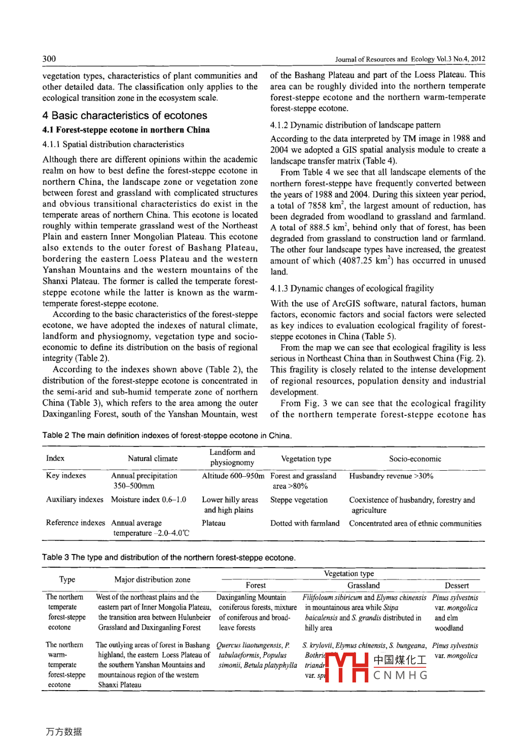 Dec. 2012Journal of resources and ecologyVoL 3 No 4J Resou.Ecol.20123(4)297-307ArticleDo:10.5814ssn.1674-764X201204002www.jorae.cnypical Ecotones in ChinaGAO Jixi*, LV Shihai, ZHENG Zhirong and LIU JunhuiI Nanjing Institute of Environmental Sciences, Ministry of Environmental Protection of China, Nanjing 210042, China;2 State Environmental Protection Key Laboratory of Regional Eco-process and Function Assessment, Chinese Research Academy of EnvironmentalSciences(CRAES), Beijing 100012, ChinaAbstract: An ecotone is a transition area between two biomes or two different ecosystems and are oftenfragile, sensitive and variable. Since the 1970s the study of the ecotone has increasingly gained notorietyas an important facet of ecological research. China, with a vast complex geology, climate and vegetation,is home to a variety of ecotones. this variety is witnessed in breeds, scales and sizes. This vast array hasnot only laid a solid foundation fortific research but also enhanced Chinas economic developmentsocial development and cultural diversity conservation. according to the geographical distribution andecological features of China s large scale ecotone, The trinity index system" has been establishedincluding land use types, natural climate characteristics and agricultural economic development to classifyand defne the spatial distribution of typical ecotones in China. Based on this classifcation, the naturalenvironmental characteristics, environmental fragility and the existing problems of five kinds of typicalecotones have been studied. This study will lead to a comprehensive understanding of the evolutionarypatterns of ecotonesKey words: ecotones: classifcation; characteristics; existing problems and countermeasuresKevin and Thomas 2006; Temuulen 2005; Wang et al. 2000)1 IntroductionChina has a vast territory with a complex and changingEcotone refers to a transition area between two biomes or geology, climate and vegetation, and is consequently hometwo different ecosystems(Odum 1971). Since the ecotone to a variety of ecotones. This variety is witnessed in breeds,was first proposed by F. E. Clements in 1905, many have scales and sizes. This vast array has not only laid a solidcontributed to ecotone research and theory. A focus on foundation of scientific research but enhanced China'secotones has also played an important role in protecting economic development, social development and culturalecological environment and enhancing industrial and diversity conservation. The rational selection of a typicalagricultural development. Especially since the 1970s, the ecotone, the in-depth study of its spatial distribution laws,study of the ecotone has increasingly gained notoriety as an characteristics of natural environment as well as the fragilityimportant facet of ecological research.of the ecological environment will lead to a comprehensiveThe ecotone possesses many unique natural attributes understanding of the evolutionary patterns of ecotonessuch as the distinctiveness of edge efects( Clements 1905 This study will play a significant role in protecting regionaHardt 1989), non-continuity of vegetation distribution, ecological environments and optimizing economic structuresheterogeneity in landscape structure(Walker 1979, 1985and the fragility of the ecological environment. These 2 Defining ecotonesattributes guide the study of ecotones and play an important According to Clements(1905), the ecotone refers to theand irreplaceable role in the exploration of natural ecological overlapping stress zone of plant associations determined bylaws and protection of the ecological environment. For these climate, which can be classified into local edges or margins,reasons, the ecotone has increasingly received attention from the treeline and biome ecotone(Clements 1905: risser 1995)scientists and governments(Di Casstris and Hansen 1992; The ecotone defined in the literature afterwards refers toReceived: 2012-05-24 Accepted: 2012-11-21中國煤化工Foundation: Specific Research on Public Service of Environmental Protection in China(No. 2011(Special Commonweal Study on Environmental Protection of China(No. 201209027)CNMHCorresponding author: GAO Jixi. Emial: gjx(@nies.orgJournal of Resources and Ecology VoL 3 No 4, 2012the ecotone between two different ecological communities basis of evaluation and subdivision according to the natural(Tansley and Chipp 1926; Odum 1983). Today's generally distribution law, inconsistent with administrative regionsaccepted definition of ecotone was proposed in the SCOPE However, most human activities are significantly influencedmeeting in Paris, France in 1987: The ecotone refers to and restricted by administrative divisions. Therefore, in thisthe transition zone between adjacent ecosystems, having paper the classification of ecotones is not only conducteda set of characteristics uniquely defined by space and time on the basis of the integrality of administrative regionsscales and by strength of the interactions between adjacent (counties, cities and districts), but also on the continuity ofecological systems"(Holland 1988). We define ecotones spatial ecotones according to similarities in environmentalas the transition zone where one ecosystem is changing to characteristicsanother and the environmental factors as well as biologicalgroups are in a critical state. In ecotones, the structure3. 1.3 Grading principlefunction and processes of ecosystems are so complex that Ecotones differ in their spatial scales and structure levels.Ifthey will be extremely sensitive to changing climates and ecotones are classified hierarchically, it will help to identifyhuman interferences. Therefore, ecotones can be viewed not environmental problems at different scales and lay a solidonly as the signal amplifier from outside interference but also foundation for environmental management and decisionas an important warning zone for research on global change. makers to implement measures and accurately g