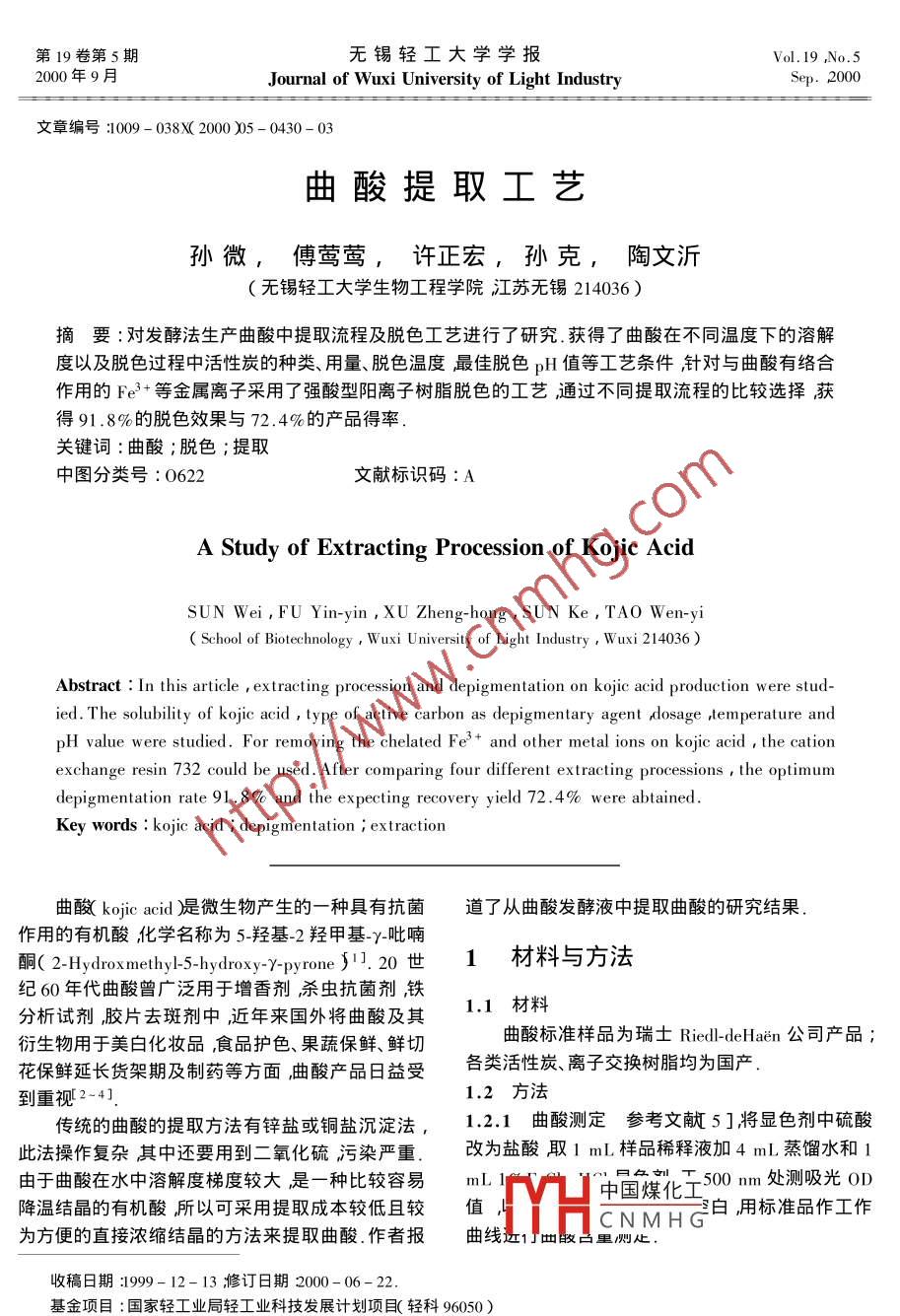 曲酸提取工藝