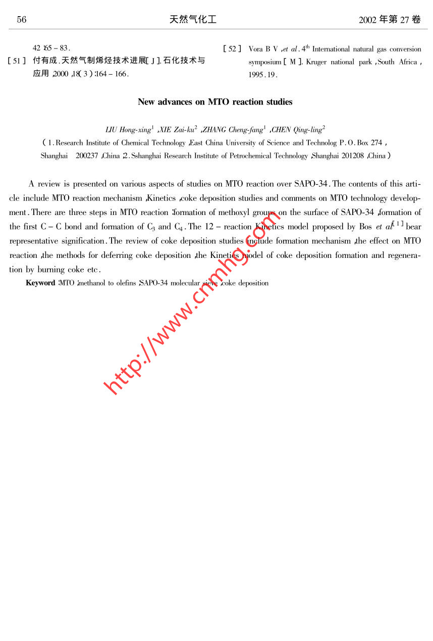 - 期刊名字:天然氣化工