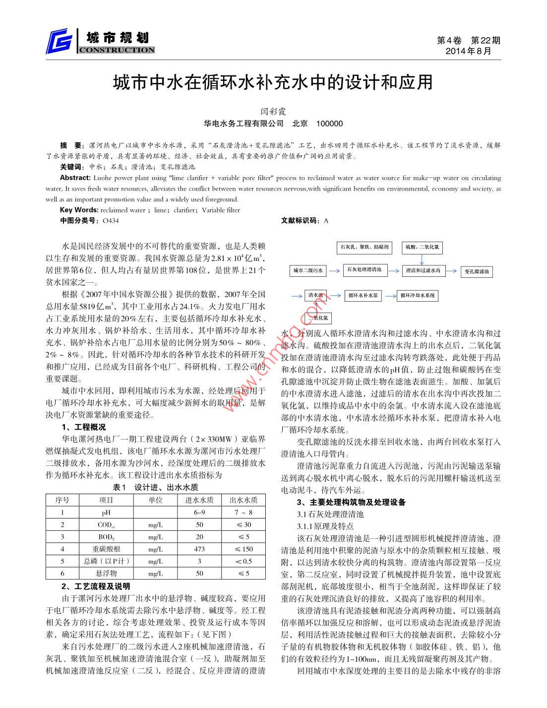 城市中水在循環(huán)水補(bǔ)充水中的設(shè)計(jì)和應(yīng)用