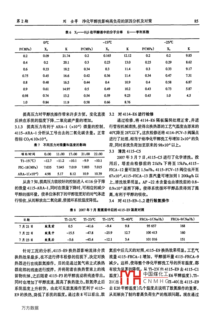 凈化甲醇洗影響高負(fù)荷的原因分析及對(duì)策