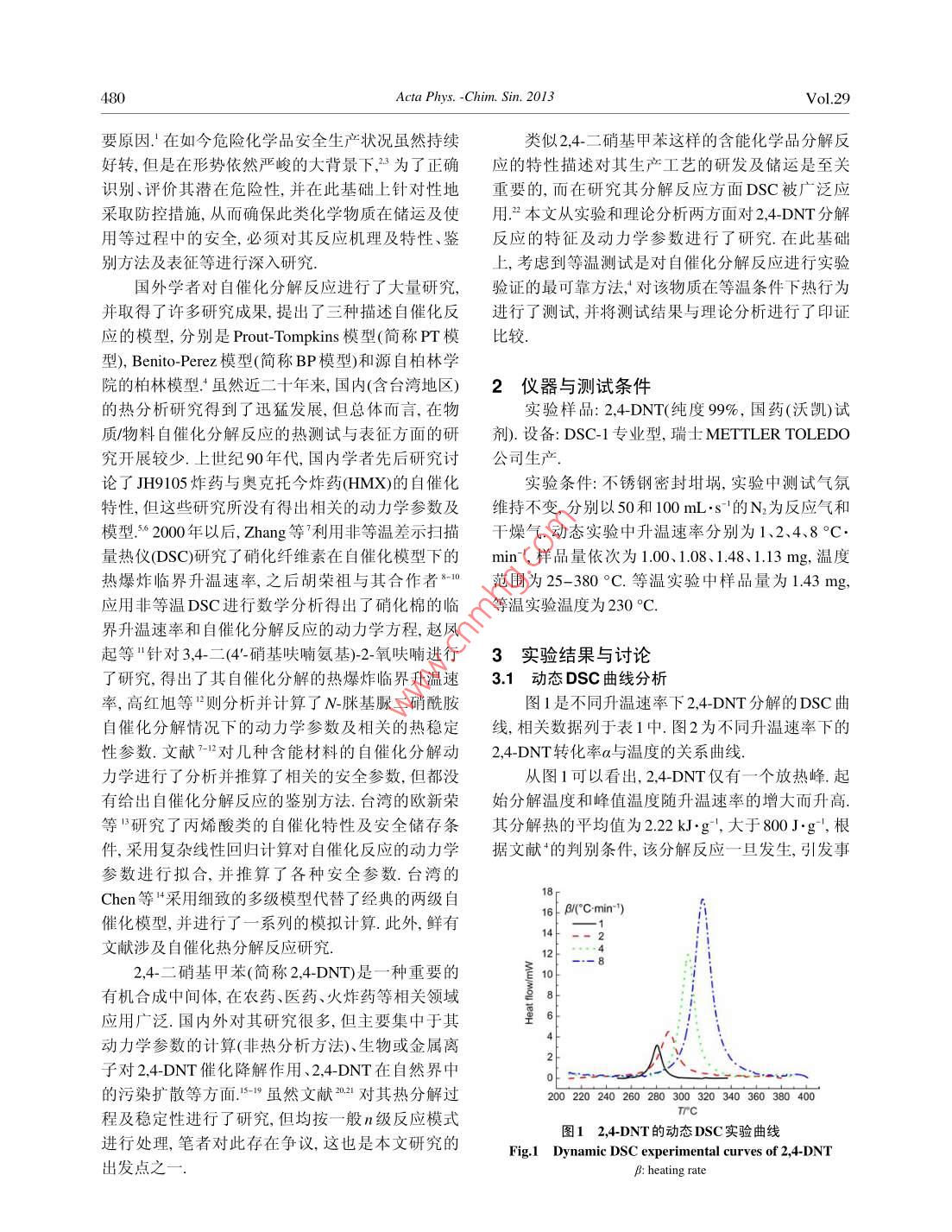 2,4-二硝基甲苯熱解自催化特性鑒別及其熱解動力學(xué)