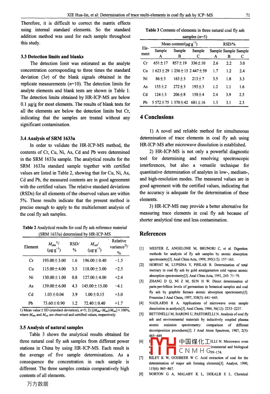 Determination of trace multi-elements in coal fly ash by inductively coupled plasma mass spectrometr