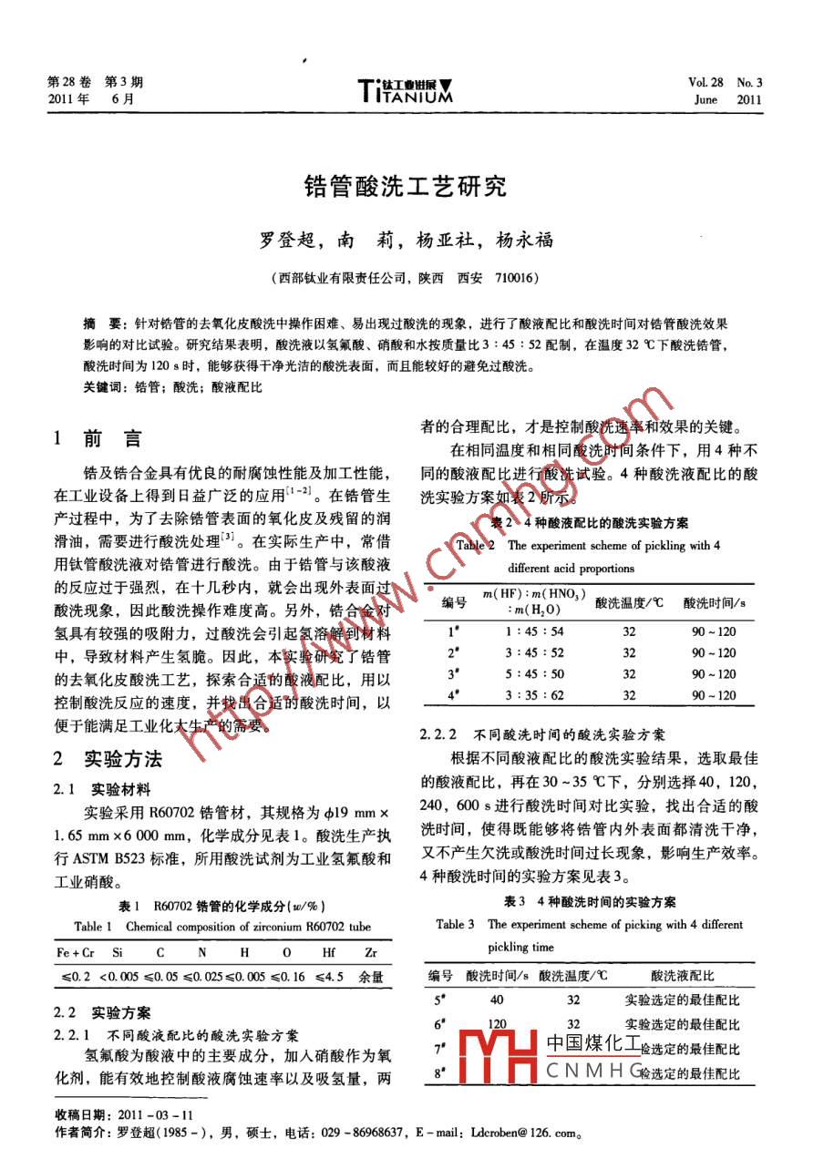 鋯管酸洗工藝研究