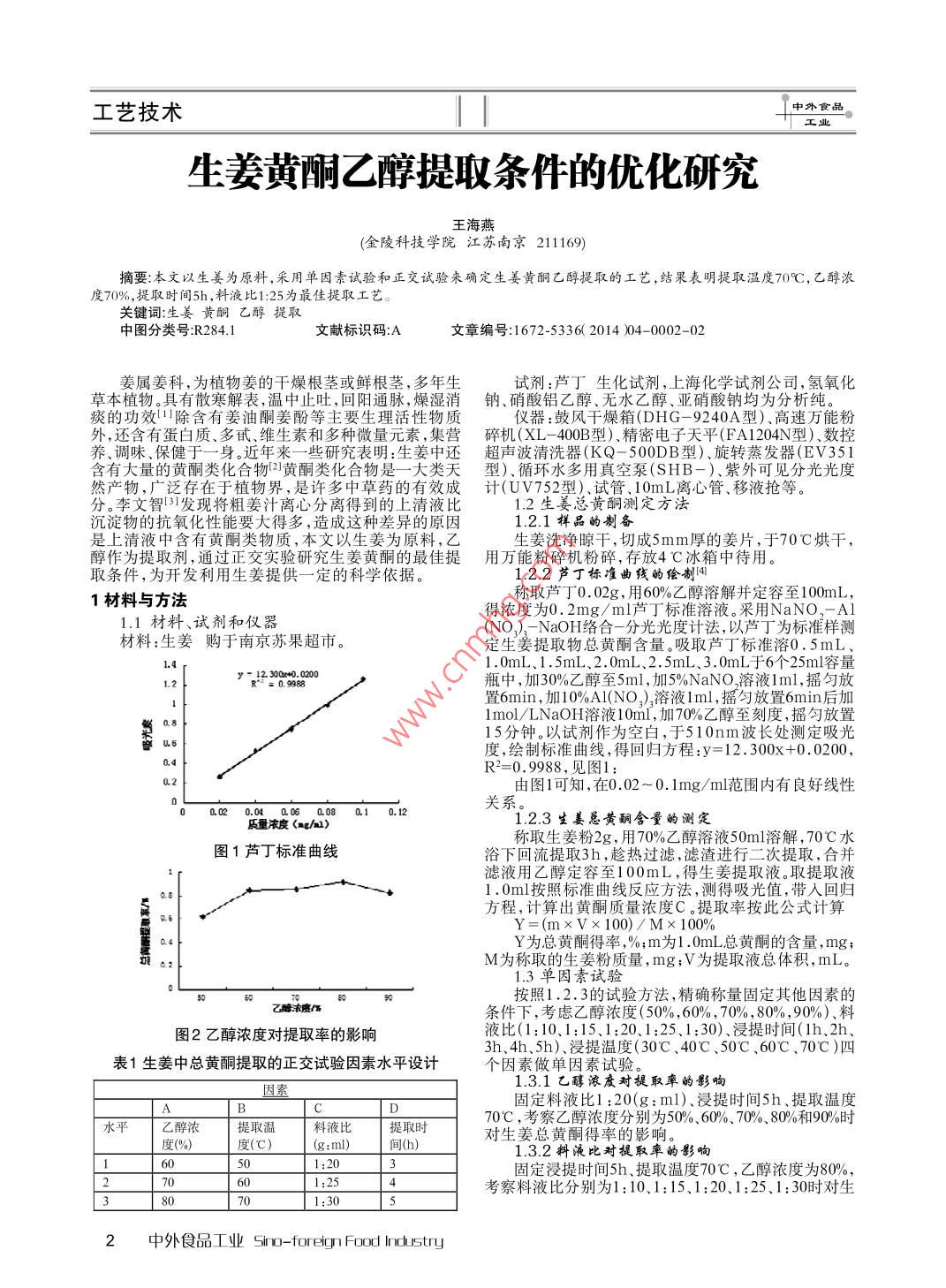 生姜黃酮乙醇提取條件的優(yōu)化研究