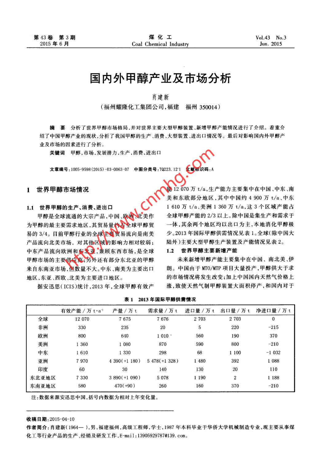 國內(nèi)外甲醇產(chǎn)業(yè)及市場分析