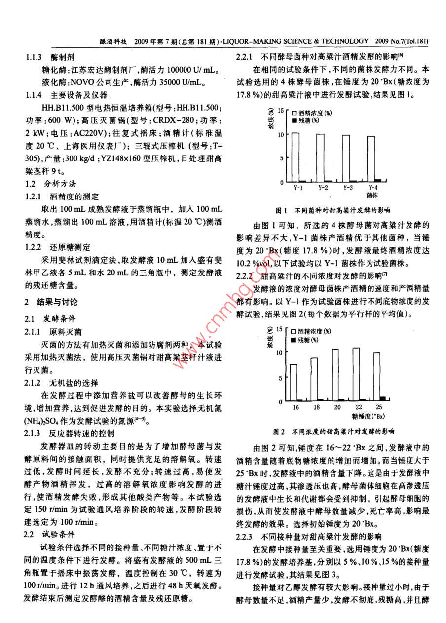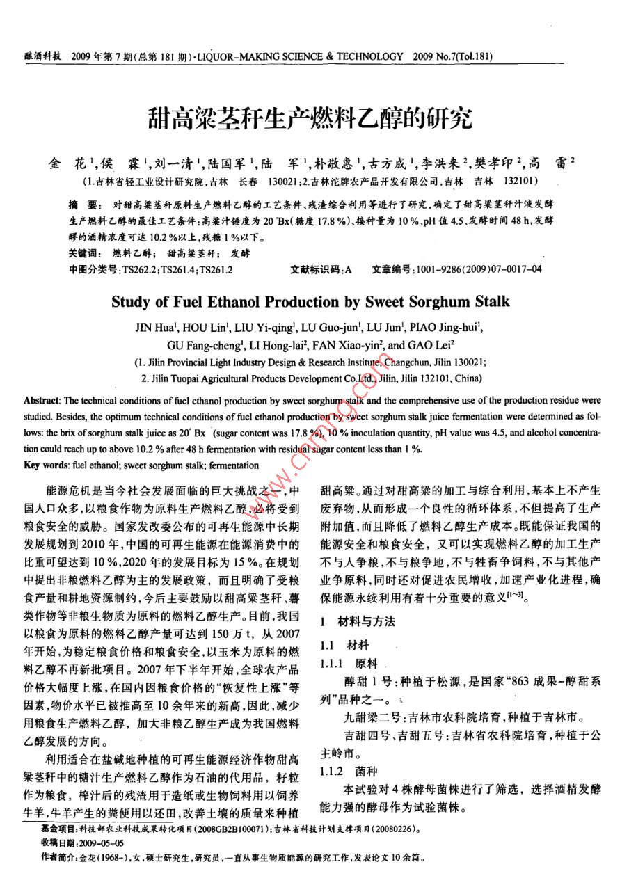 甜高粱莖稈生產(chǎn)燃料乙醇的研究