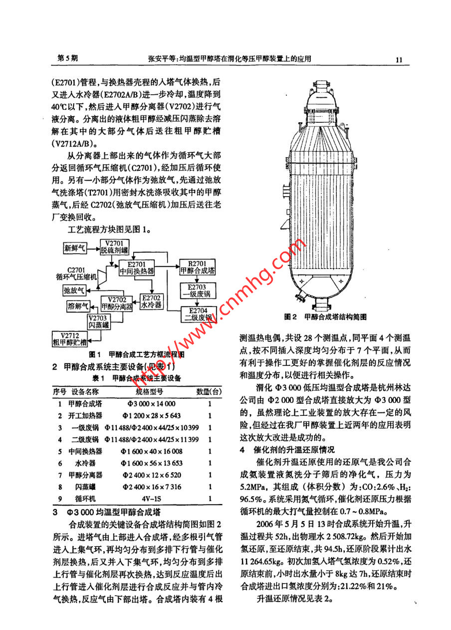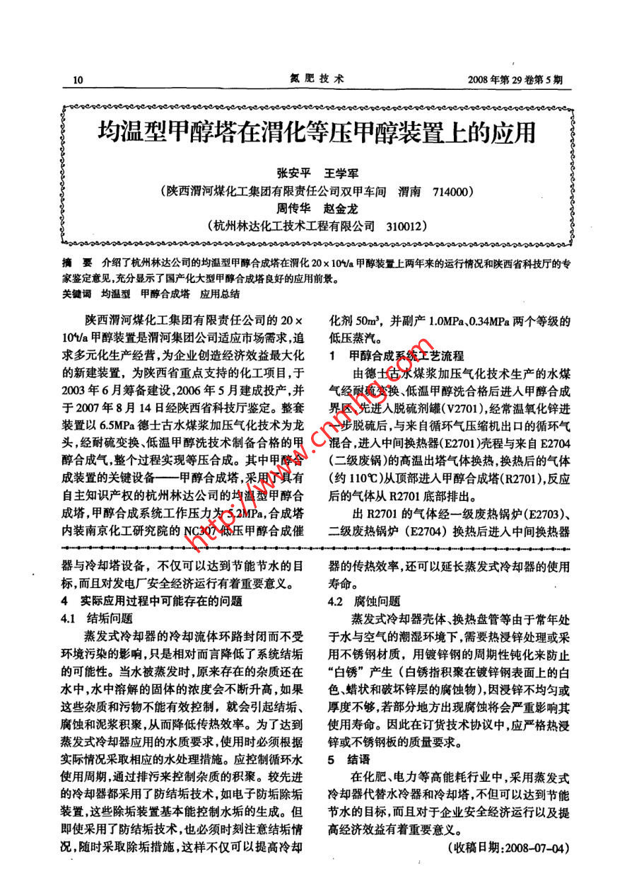 均溫型甲醇塔在渭化等壓甲醇裝置上的應(yīng)用