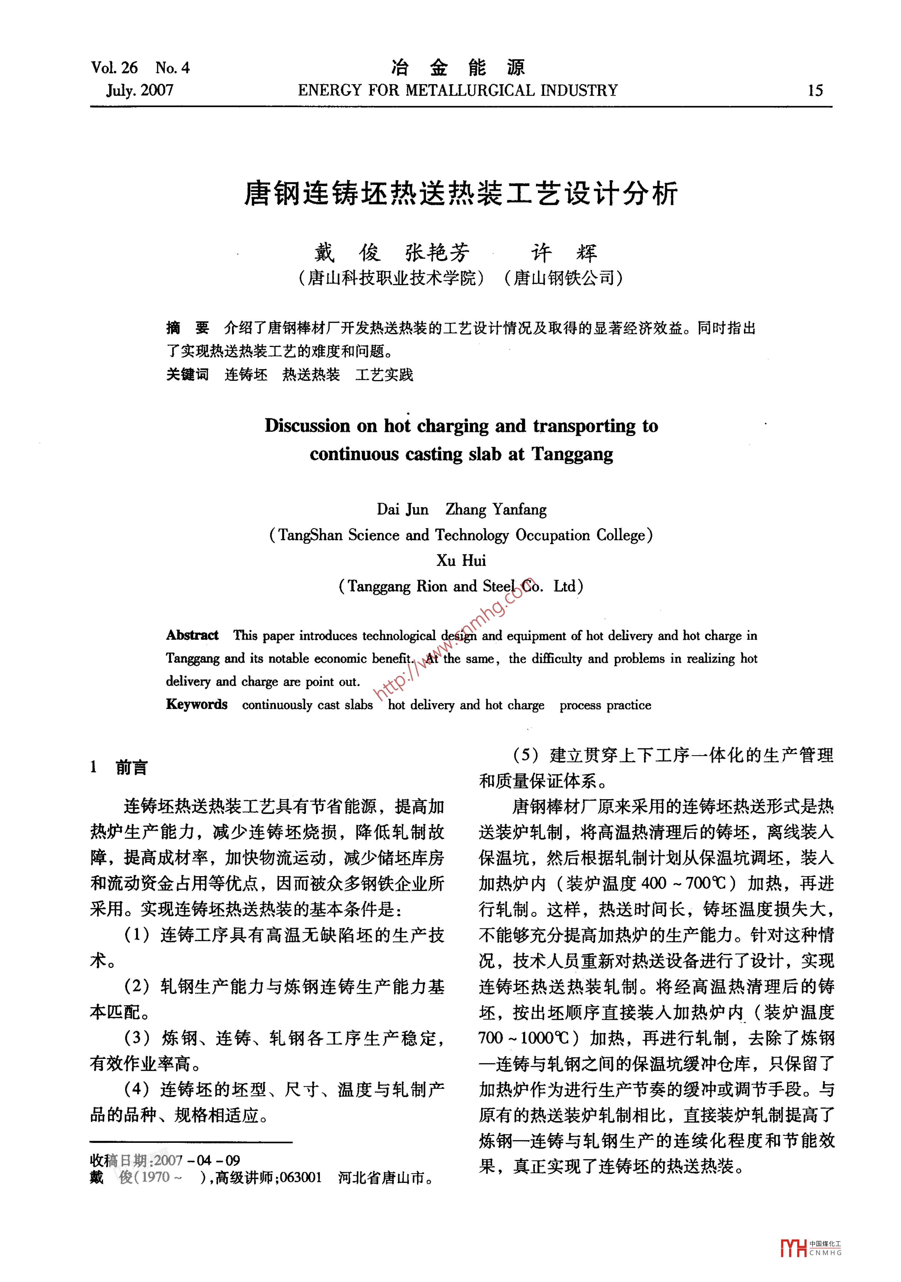 唐鋼連鑄坯熱送熱裝工藝設(shè)計分析
