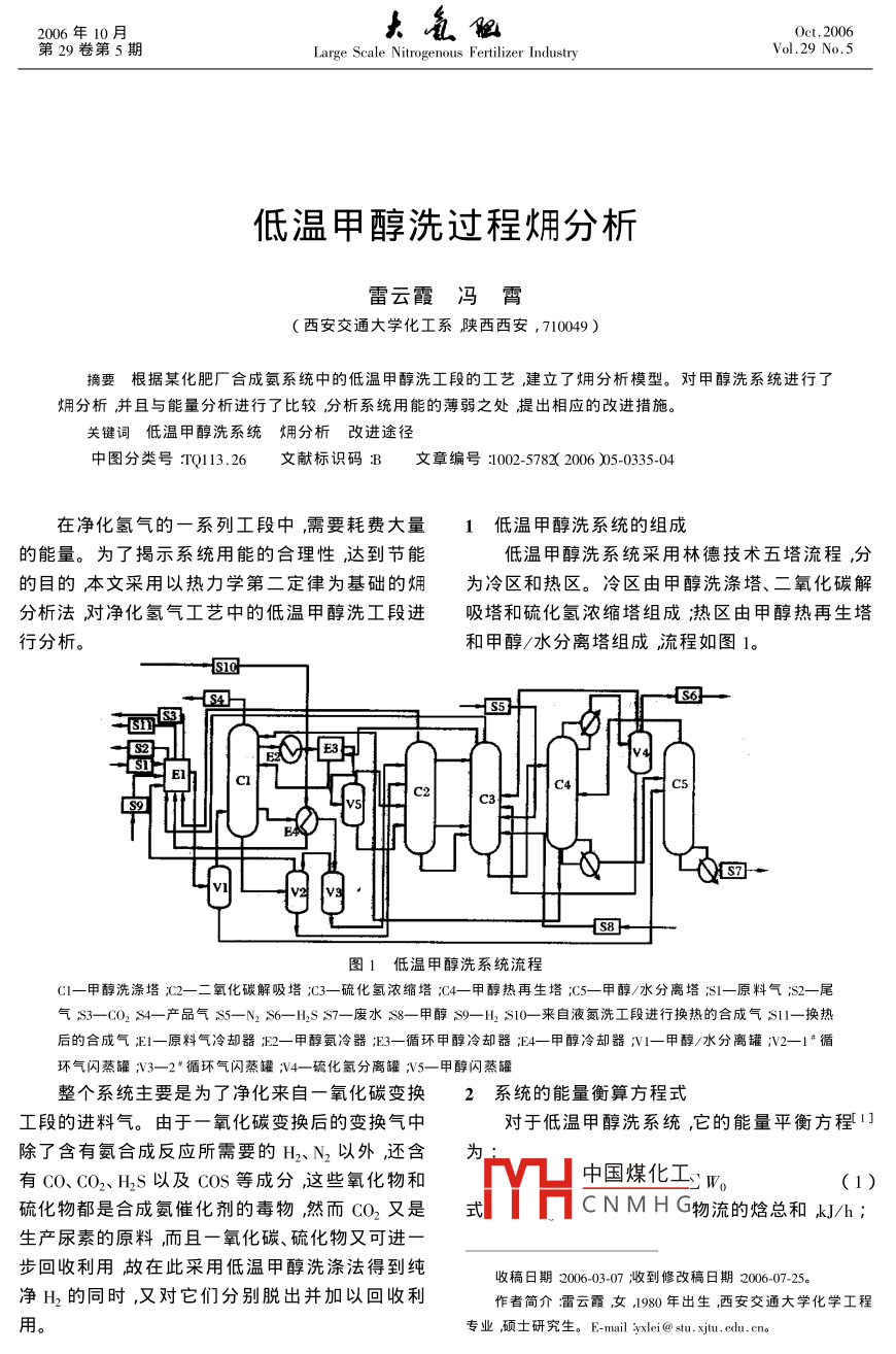 低溫甲醇洗過(guò)程(火用)分析