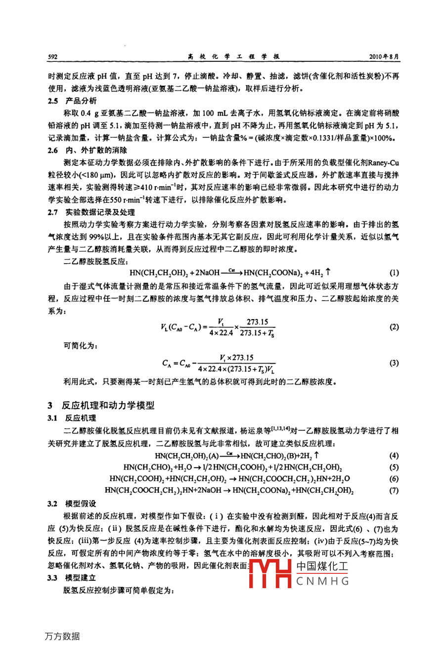 二乙醇胺脫氫反應(yīng)動(dòng)力學(xué)研究