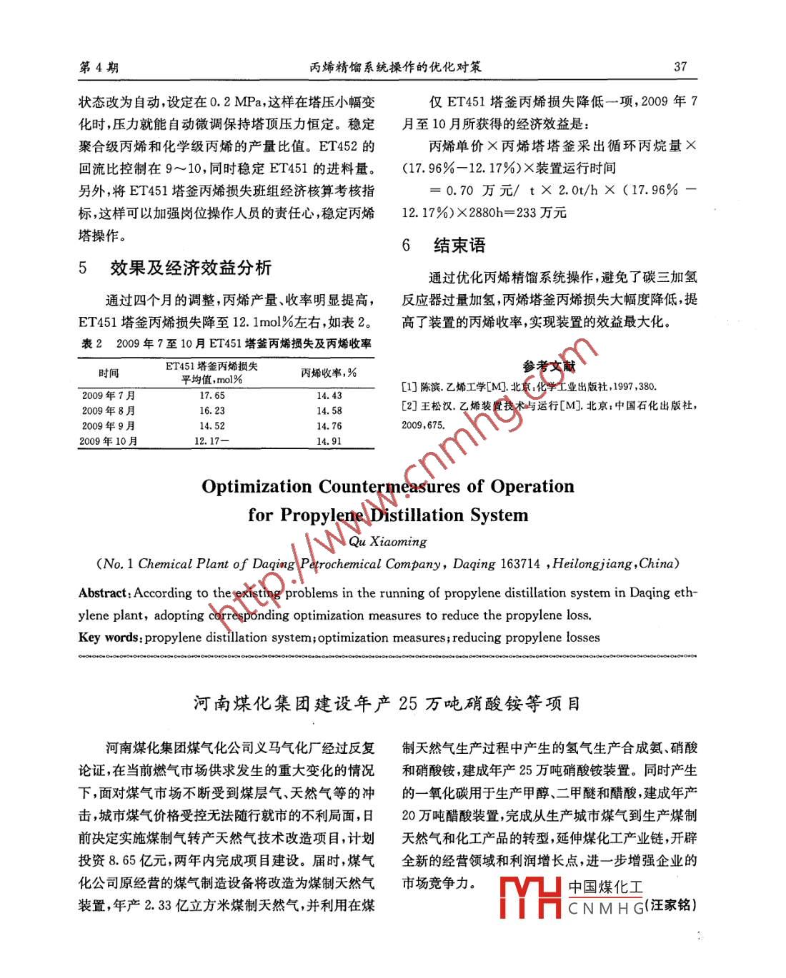 丙烯精餾系統(tǒng)操作的優(yōu)化對(duì)策