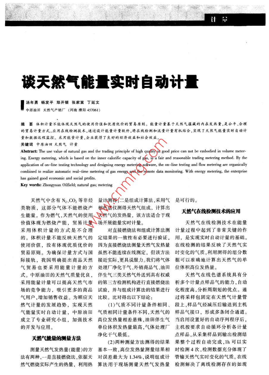 談天然氣能量實(shí)時(shí)自動(dòng)計(jì)量