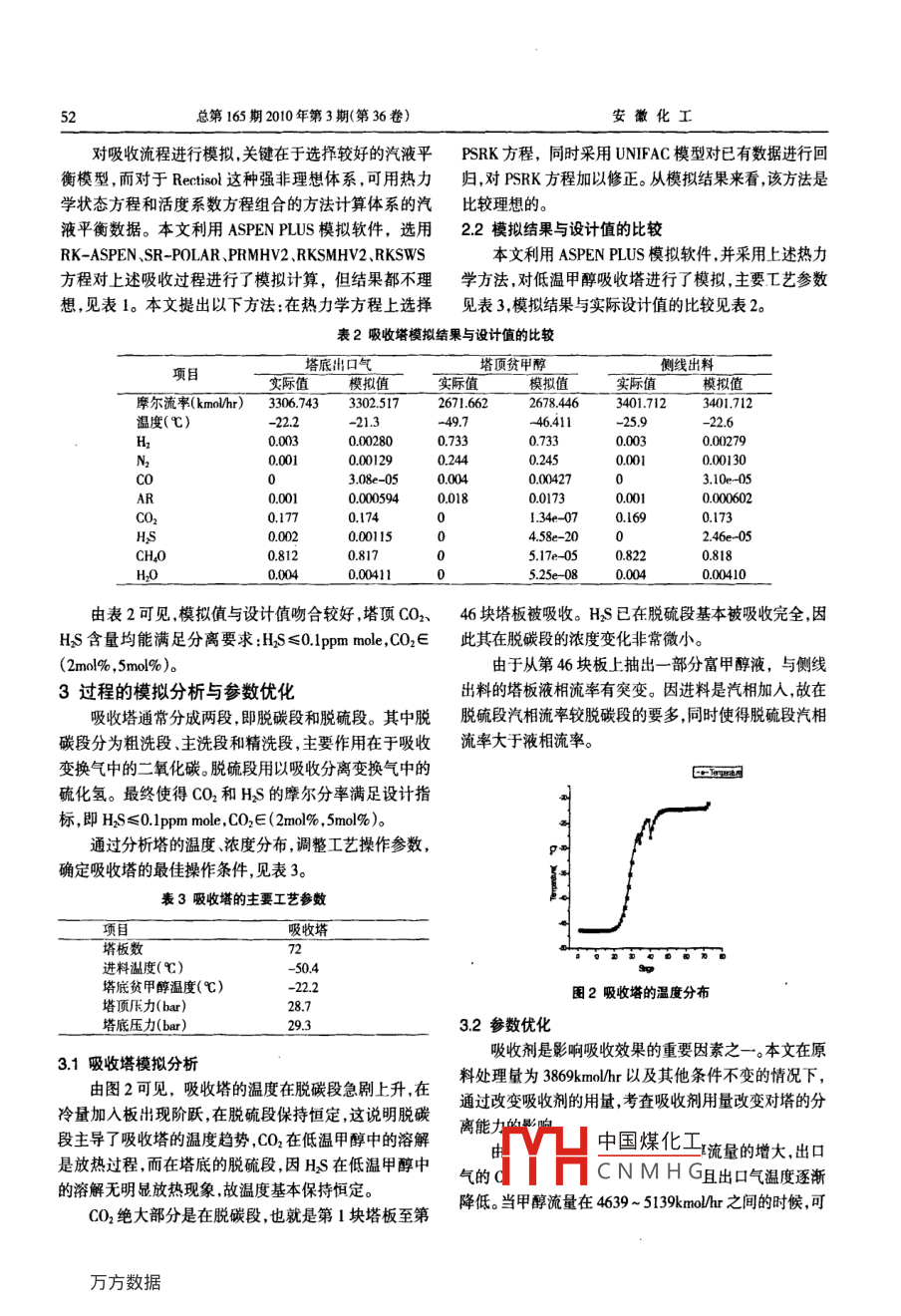 低溫甲醇洗吸收塔工藝模擬與過程參數(shù)優(yōu)化