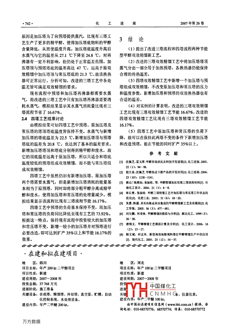 精甲醇及MTO級甲醇精餾工藝技術進展 2020-06-12