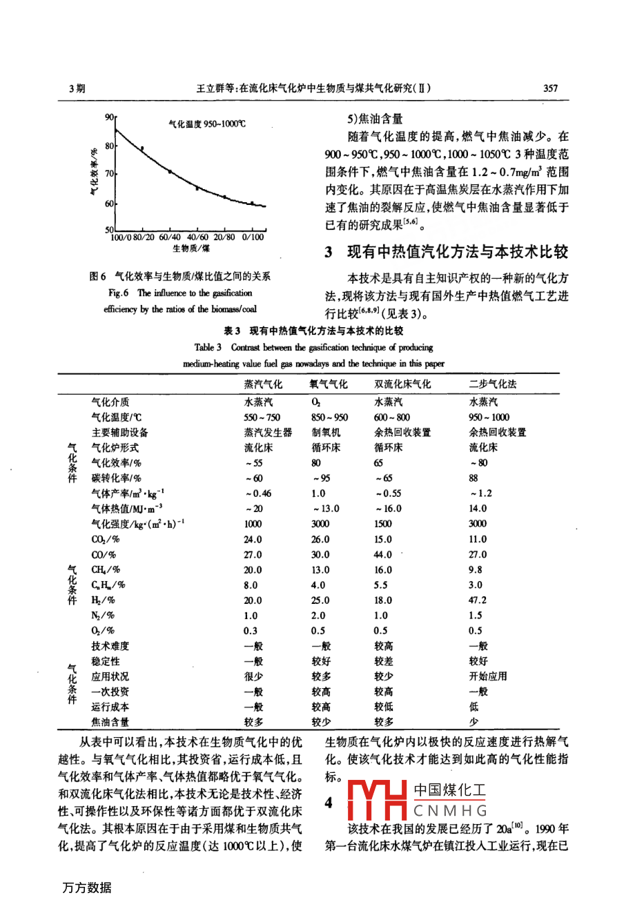 在流化床氣化爐中生物質(zhì)與煤共氣化研究(Ⅱ)——以水蒸汽為氣化劑生產(chǎn)中熱值燃氣