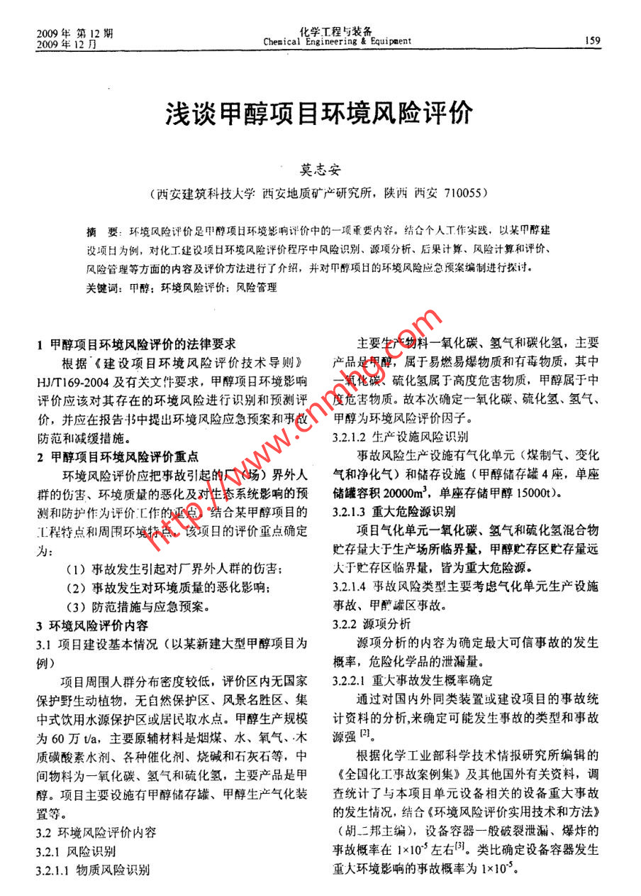 淺談甲醇項(xiàng)目環(huán)境風(fēng)險(xiǎn)評(píng)價(jià)