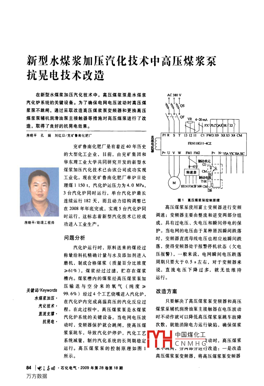 新型水煤漿加壓汽化技術中高壓煤漿泵抗晃電技術改造