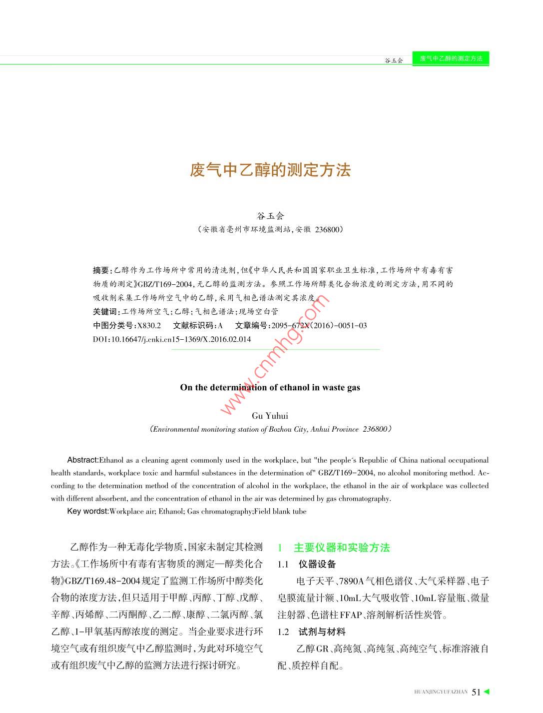 廢氣中乙醇的測定方法