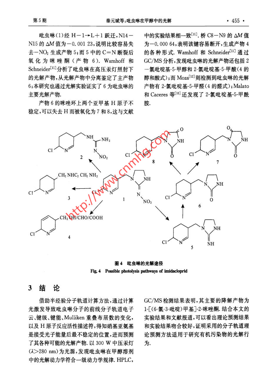 吡蟲(chóng)啉在甲醇中的光解研究