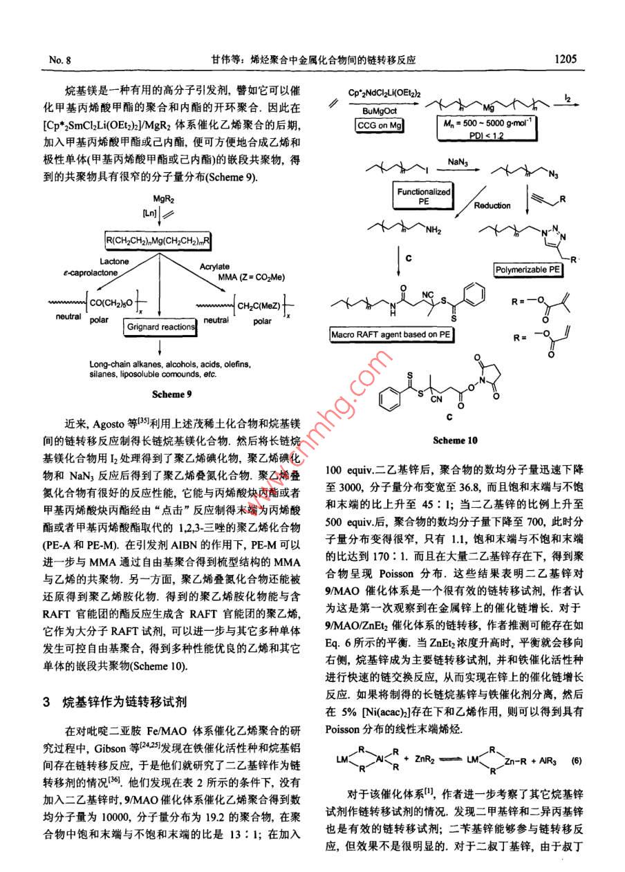 烯烴聚合中金屬化合物間的鏈轉(zhuǎn)移反應(yīng)