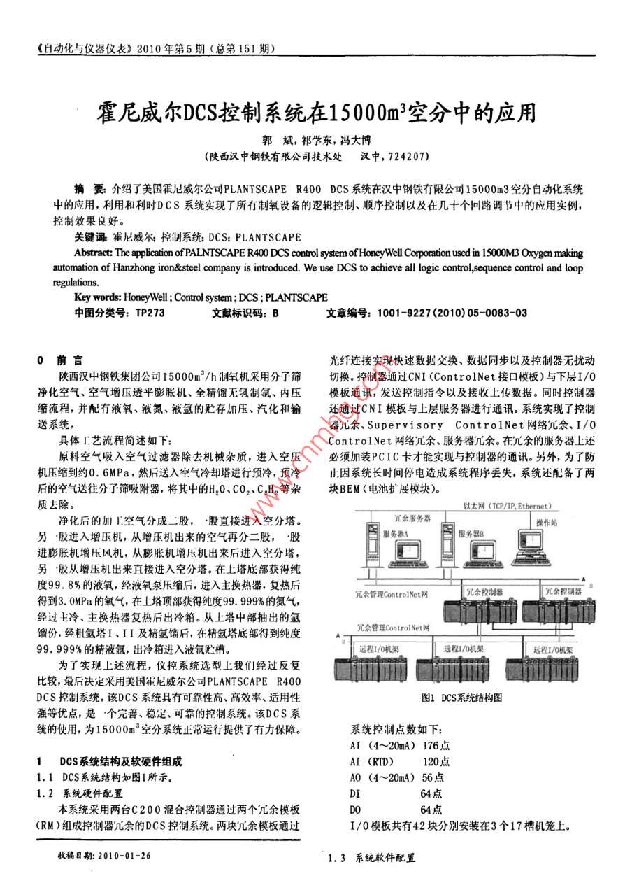 霍尼威爾DCS控制系統(tǒng)在15000m3空分中的應(yīng)用