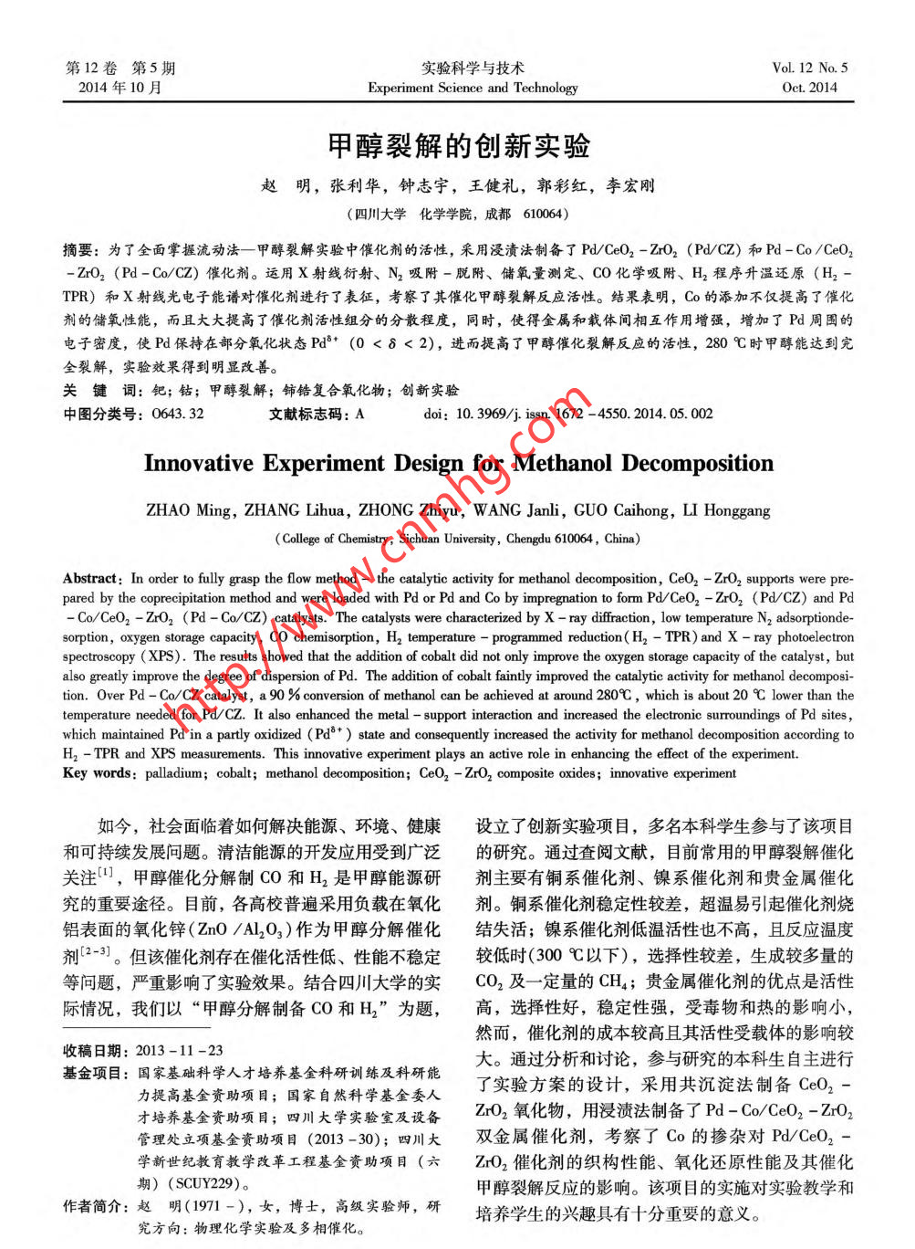 甲醇裂解的創(chuàng)新實(shí)驗(yàn)