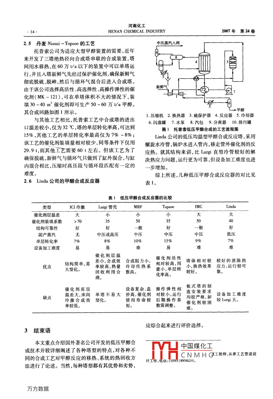 Lurgi和ICI低壓甲醇合成工藝比較 2020-06-12