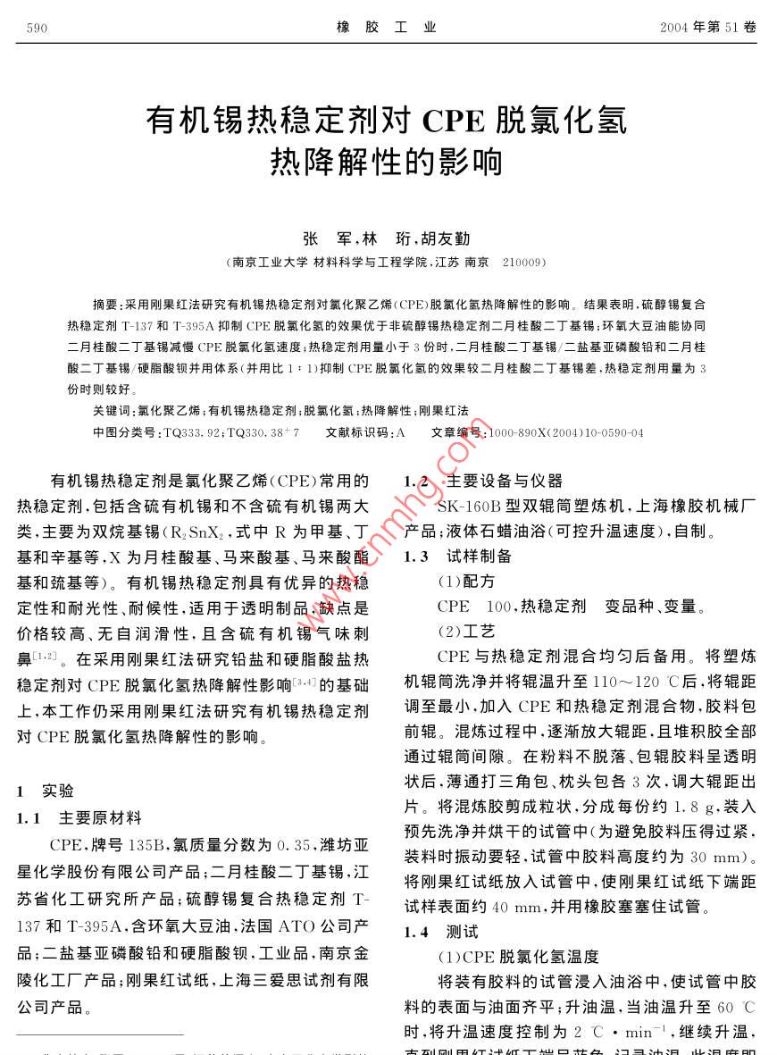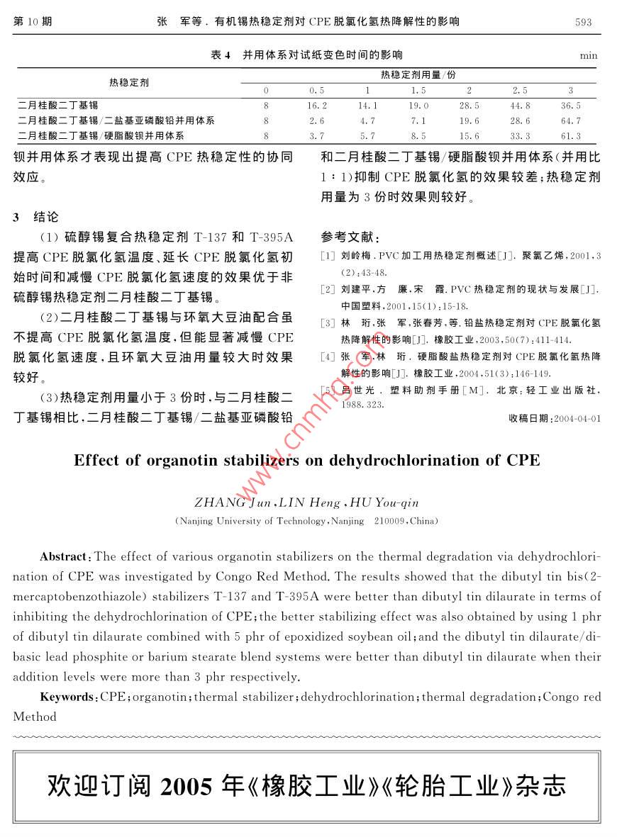 有機(jī)錫熱穩(wěn)定劑對(duì)CPE脫氯化氫熱降解性的影響