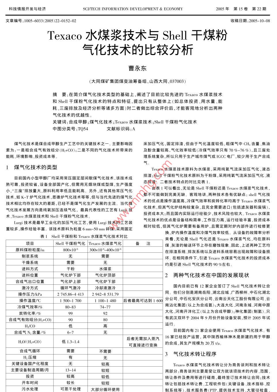 Texaco水煤漿技術(shù)與Shell干煤粉氣化技術(shù)的比較分析