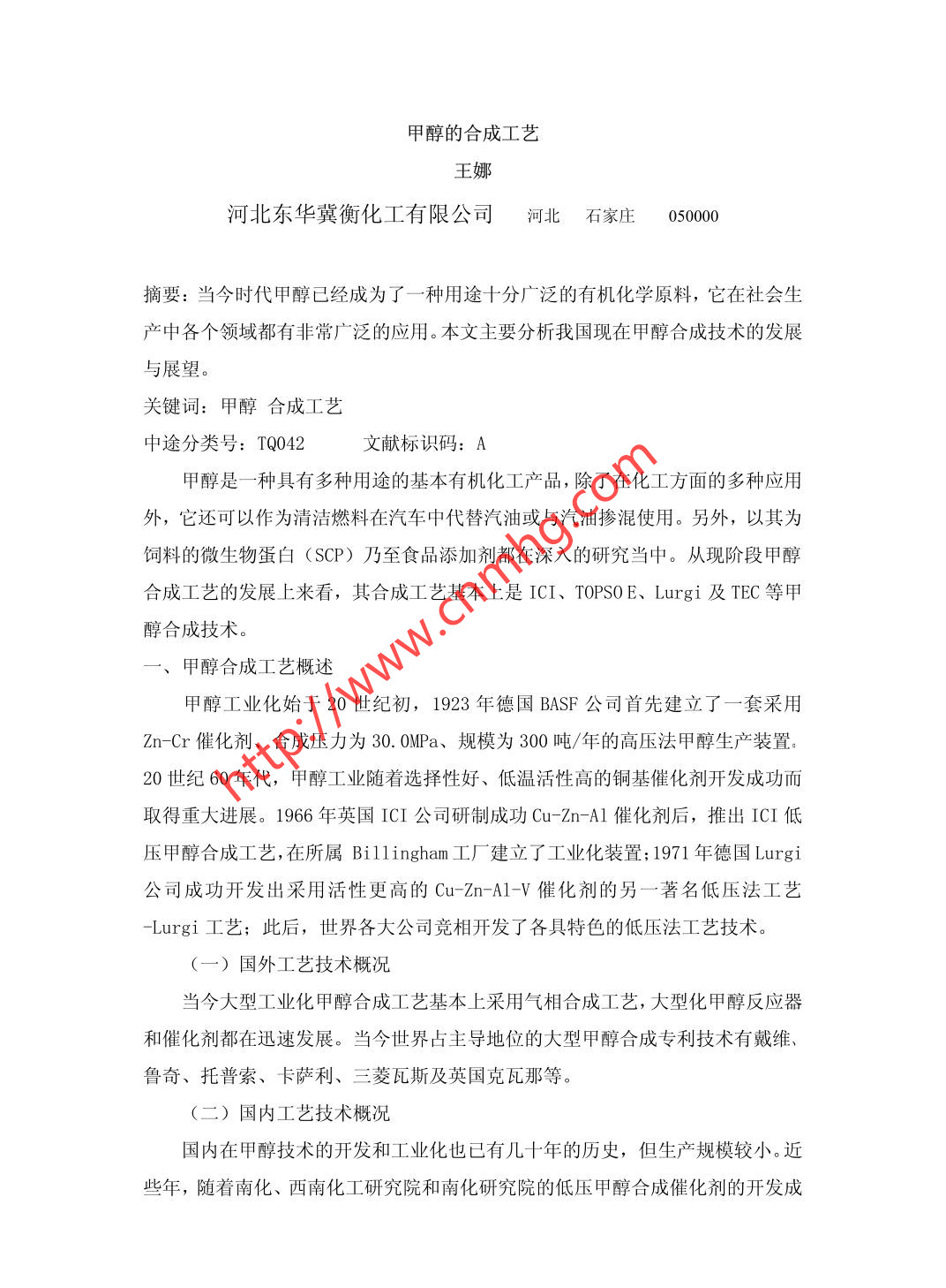Lurgi和ICI低壓甲醇合成工藝比較 2020-03-17