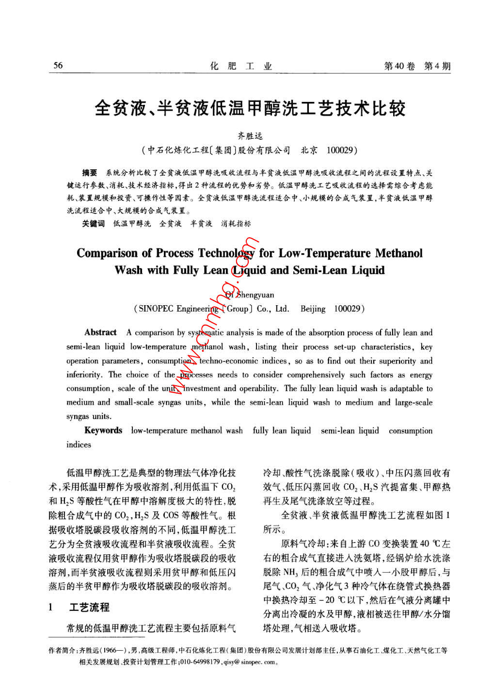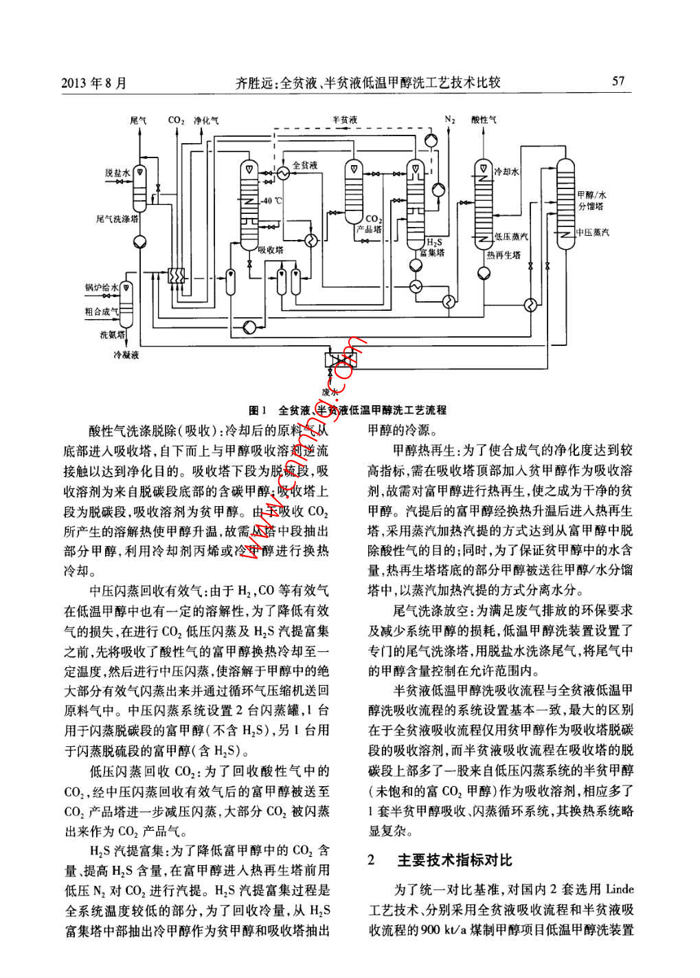 全貧液、半貧液低溫甲醇洗工藝技術(shù)比較