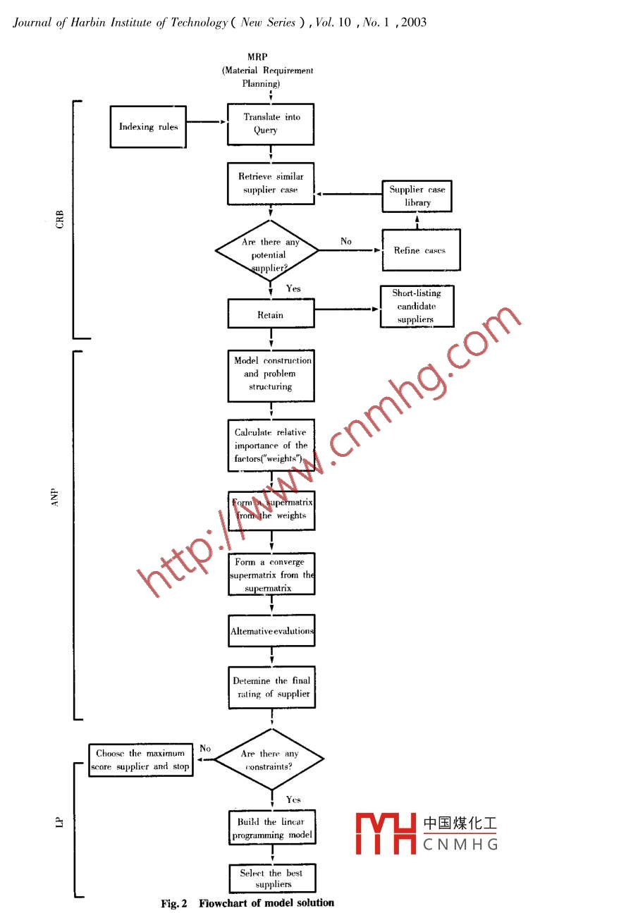 Journal of Harbin Institute of Technology( New Series ), Vol. 10 ,No. 1 ,2003An integrated model for supplier selection processOboulhas Conrad Tsahat ONESIME ,XU Xiao-fei , ZHAN De-chen ,SHA Lei徐曉飛,占德臣, 沙磊( Dept. of Computer Science and Engineering , Harbin Institute of Technology , Harbin 150001 , China )Abstract : In today' s highly competitive manufacturing environment , the supplier selection process becomesone of crucial activities in supply chain management. In order to select the best supplier( s )it is not only nec-essary to continuously tracking and benchmarking performance of suppliers but also to make a tradeoff betweentangible and intangible factors some of which may confict. In this paper an integration of case-based reasoning( CBR ) ,analytical network process( ANP ) and linear programming( LP ) is proposed to solve the supplier se-lection problem. .Key words : supplier selection ; case-based reasoning ; ANP ; linear programmingCLC number : TP391Document code :AArticle ID : 1005-9113( 2003 )01 -0043-080 INTRODUCTIONBasically there are two kinds of supplier selectionproblemtI : single sourcing and multiple sourcing. AIn today' s highly competitive manufacturing envi-single source establishes closer contacts with the suppli-ronment , manufacturing companies must constantly asker ,in some cases these contacts extend as far as syn-themselves these tough questions :Do we have the bestchronizing their production delivery schedules to reducesuppliers at the lowest possible prices ? Are we gettinginventory. All these well-intentioned programs , howev-and sending materials as quickly as possible ?Addition-er ,are not without problems. One obvious problem isally , the battlefield is shifting from individual companythe erosion of supply base for the buyer. Relying orperformance to what we call Supply Chain. The supplyone supplier is risky , and often might not produce thechain represents all activities associated with the move-lowest costs for the product. Also , as Newman' 31 sug-ment and transformation of raw materials to finishedgests , single sourcing may lead to loss of technologicalgoods,from primary suppliers ,to assemblers andthrust , excess control , and lack of identity for the sup-through to the end user. Increasingly , managers viewplier. However ,a stream of research in the last decadethe operations and purchasing functions as intimatelyhas focused on how the use of multiple sources can rlinked parts of the supply chain , each with the abilityduce' effective' transit or lead-times that can maketo contribute strategically to the firm. Since the typicaldual or multiple sourcing policy an effective risk strate-manufacturing firm spends approximately 60% of eachgy and cost reducing one.sales dollar on purchased components , materials ancSeveral methods for supporting. the supplier selec-services from external suppliers ,the manufacturingtion process have been proposedt 4,5 .firm' s final products are significantly affected by theLuitzen de Boer , Eva Labro , Pierangela Morlac-performance of external suppliers in terms of cost ,chit61 proposed four steps for supporting the supplierquality and so on' . The purchasing function is largelyselection process :( 1 ) finding out exactly what we wantresponsible for ( 1 ) determining the characteristics ofto achieve by selecting a supplier ,( 2 )defining the cri-purchased materials , components , and services ,( 2 )teria ,( 3 ) pre-qualifying suitable suppliers ,( 4 ) mak-selecting suppliers capable of providing the required i-ing a final choice.tems at the requisite levels of quality and price , andIn this paper , we emphasize much attention in the( 3 ) managing the transaction so that the goods or serv-pre-qualifying of suitable suppliers phase and the finalices are delivered in a timely manner. The purcha-choice phase ,because these phases ( pre-qualifyingsing department ability to identify useful suppliers canand final choice ) often being the most visible phases incontribute an organization' s efficiency and effective-the;中國(guó)煤化工ality of these phases isness : cost reduction ,profitability and flexibilty oflargeYHCNMHGY of the steps prior tocompany.theseReceived 2002 -06 -07.Sponsored by the National Natural Science Foundatioin of Chin( Grant No. 60084004 ) and National 863 Research Item/CIMS Program( Grant No.2001AA414610 ,2001 AA4115002 ) and the Cross Century Fund for Person with Ability of Chinese Educational Department.Journal of Harbin Institute of Technology( New Series ), Vol. 10 ,No. 1 ,2003( 1 )Pre-qualification of suitable suppliers phasesionmakingsituations ( such as supplier selec-The pre-qualification phase is the process of reduc-tion ) 45 . Mathematical programming ( MP ) modelsing the set of all' suppliers to a smaller set of accepta-allows the decision- maker to formulate the decisionble suppliers. This process may be caried out in moreproblem in terms of a mathematical objective functionthan one step. However , the first step always consists ofthat subsequently needs to be maximized( e. g. maxi-defining and determining the set of acceptable suppliersmize profit ) or minimized( e. g. minimize costs ) bywhile possible subsequent steps serve to reduce thevarying the values of the variables in the objectivenumber of suppliers to consider. Basically therefore.function( e. g. the amount ordered with supplier X ).pre-qualification is sorting process rather than a rankingWeber and Current' 151 proposed the use of MP. Artifi-process. Several methods have been proposed in the lit-cial intelligence( AI )-based models are based on com-erature for the pre-qualification step but the most impor-puter-aided systems that in one way or another can betant of them are briefly discussed below.trained' by a purchasing expert or historic data. AI-Categorical methods are qualitative models , basedbino and Garavellr' 16 J present a decision support systemon historical data which assigns either good ( + ),base