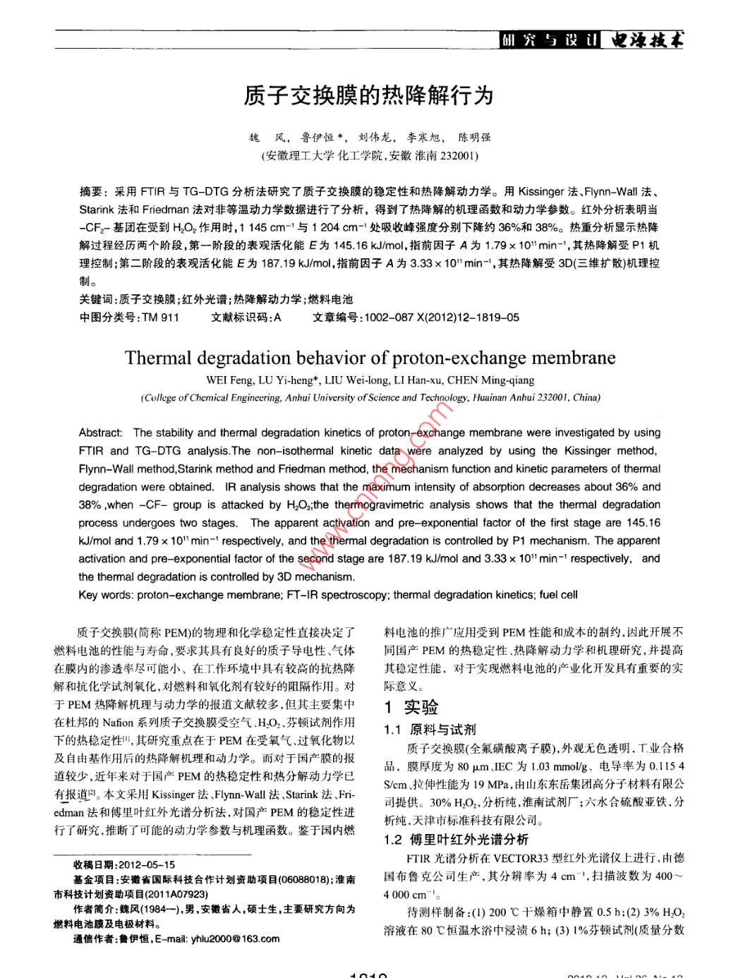 質(zhì)子交換膜的熱降解行為
