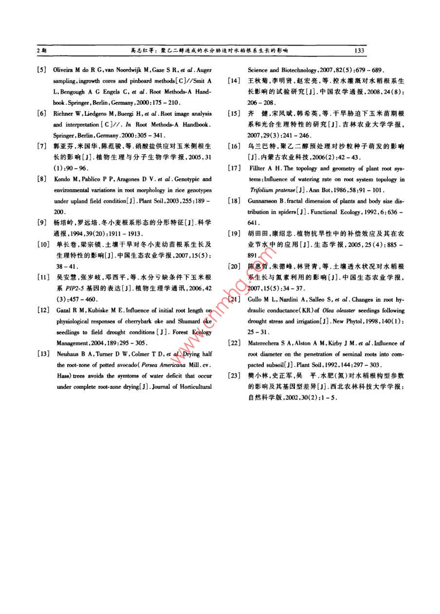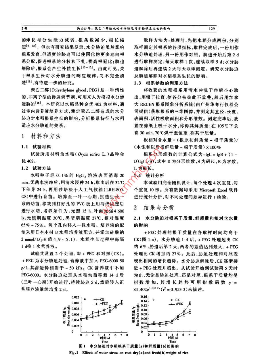 聚乙二醇造成的水分脅迫對水稻根系生長的影響