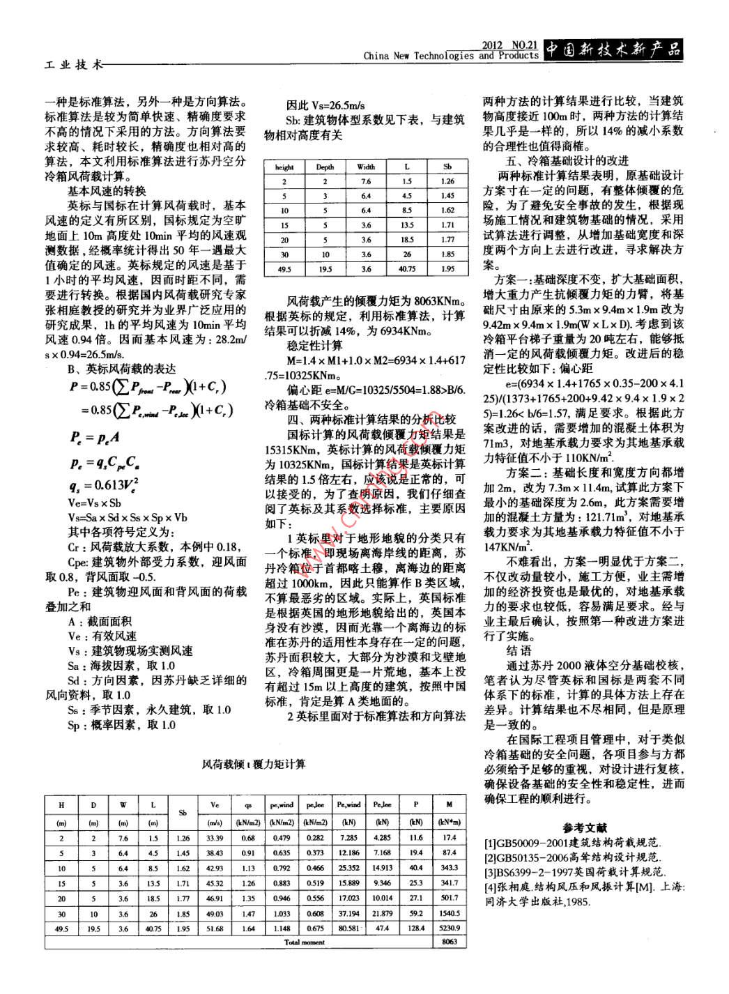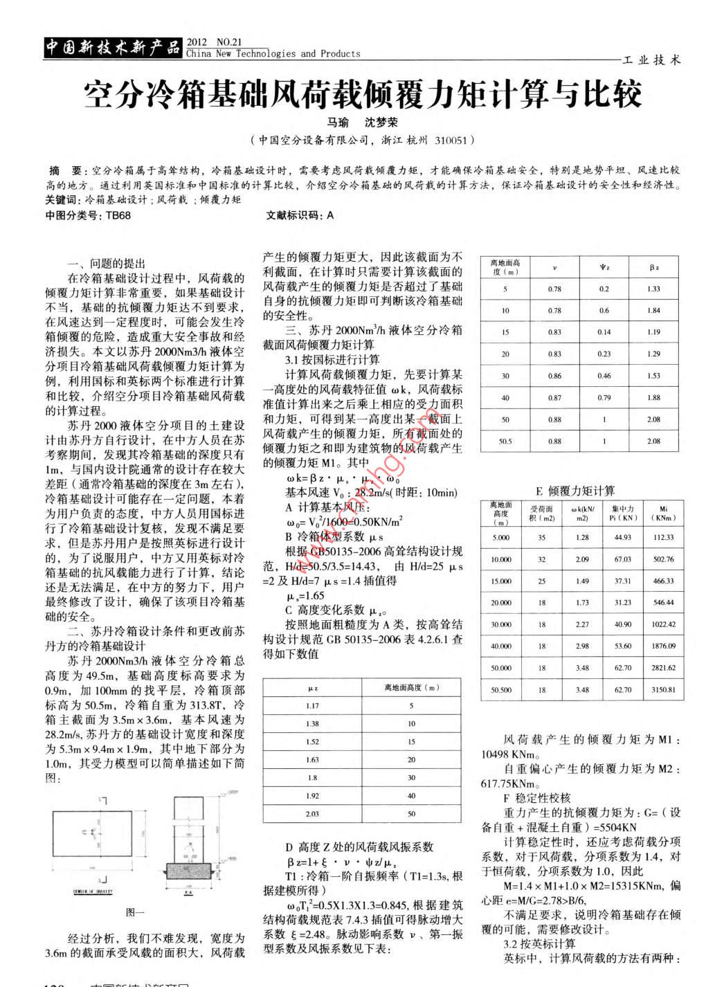 空分冷箱基礎(chǔ)風(fēng)荷載傾覆力矩計(jì)算與比較