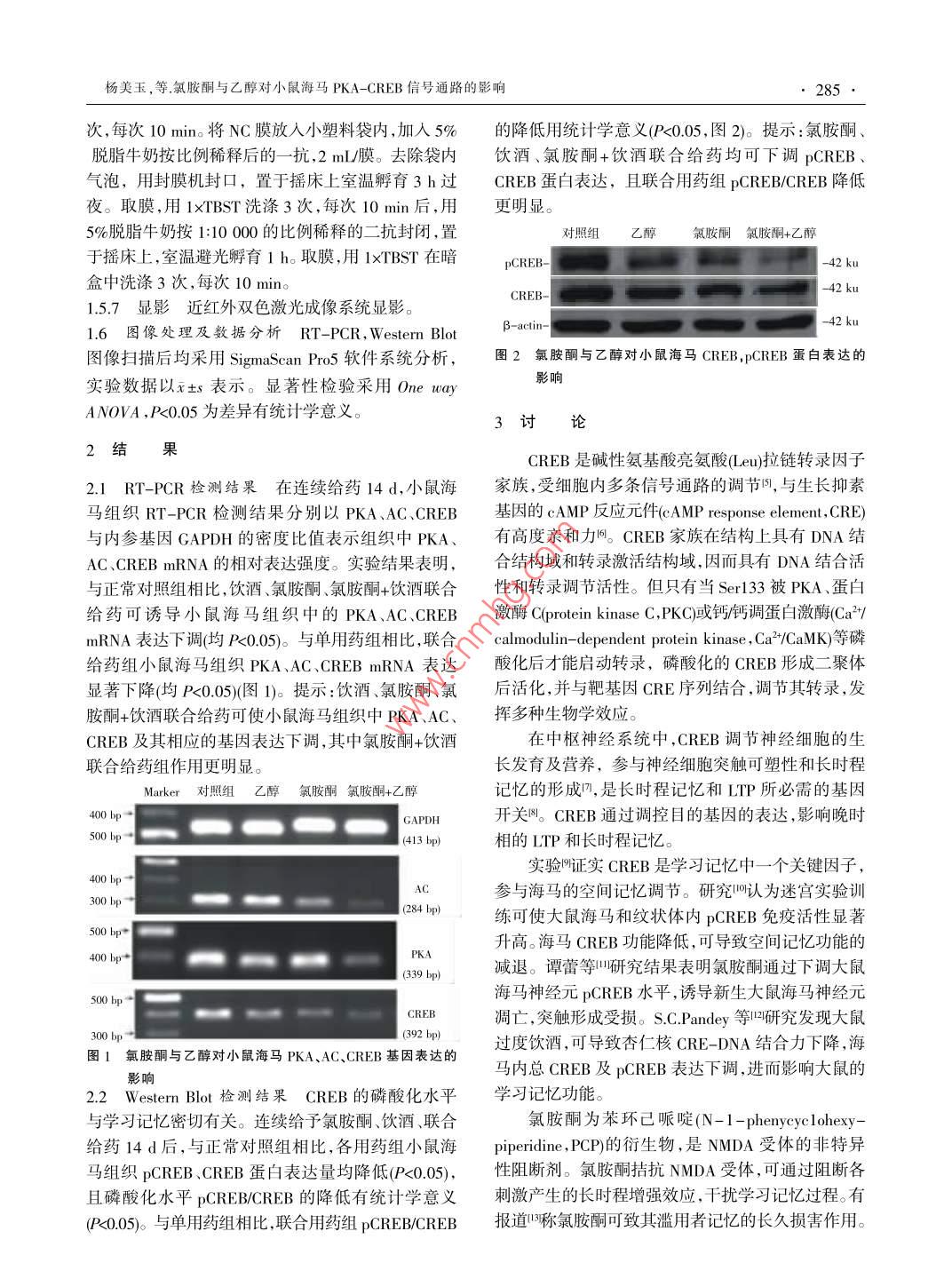 氯胺酮與乙醇對小鼠海馬PKA-CREB 信號通路的影響