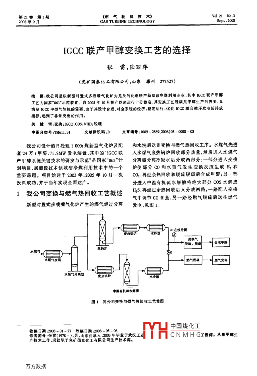 IGCC聯(lián)產(chǎn)甲醇變換工藝的選擇