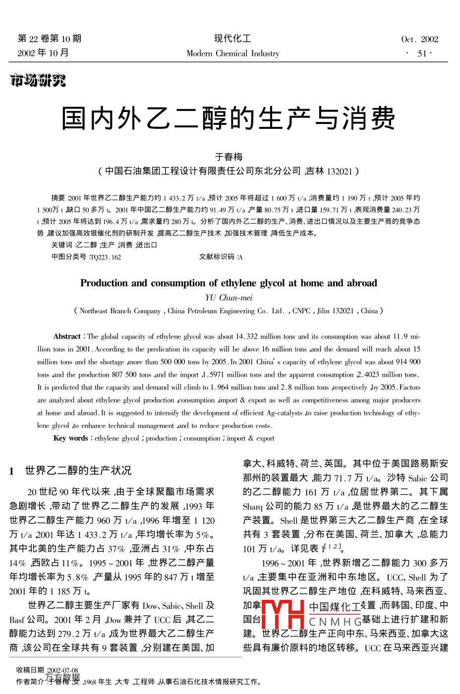 國內外乙二醇的生產與消費