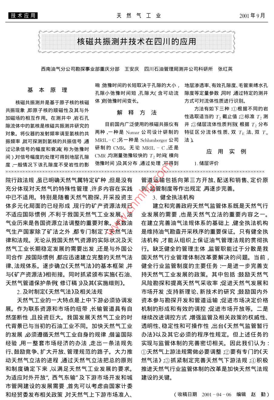- 期刊名字:天然氣工業(yè)