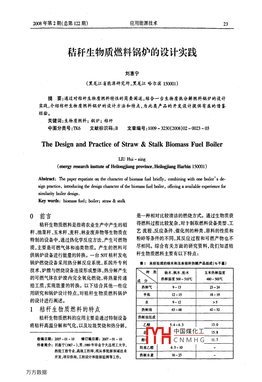 秸稈生物質(zhì)燃料鍋爐的設(shè)計實踐