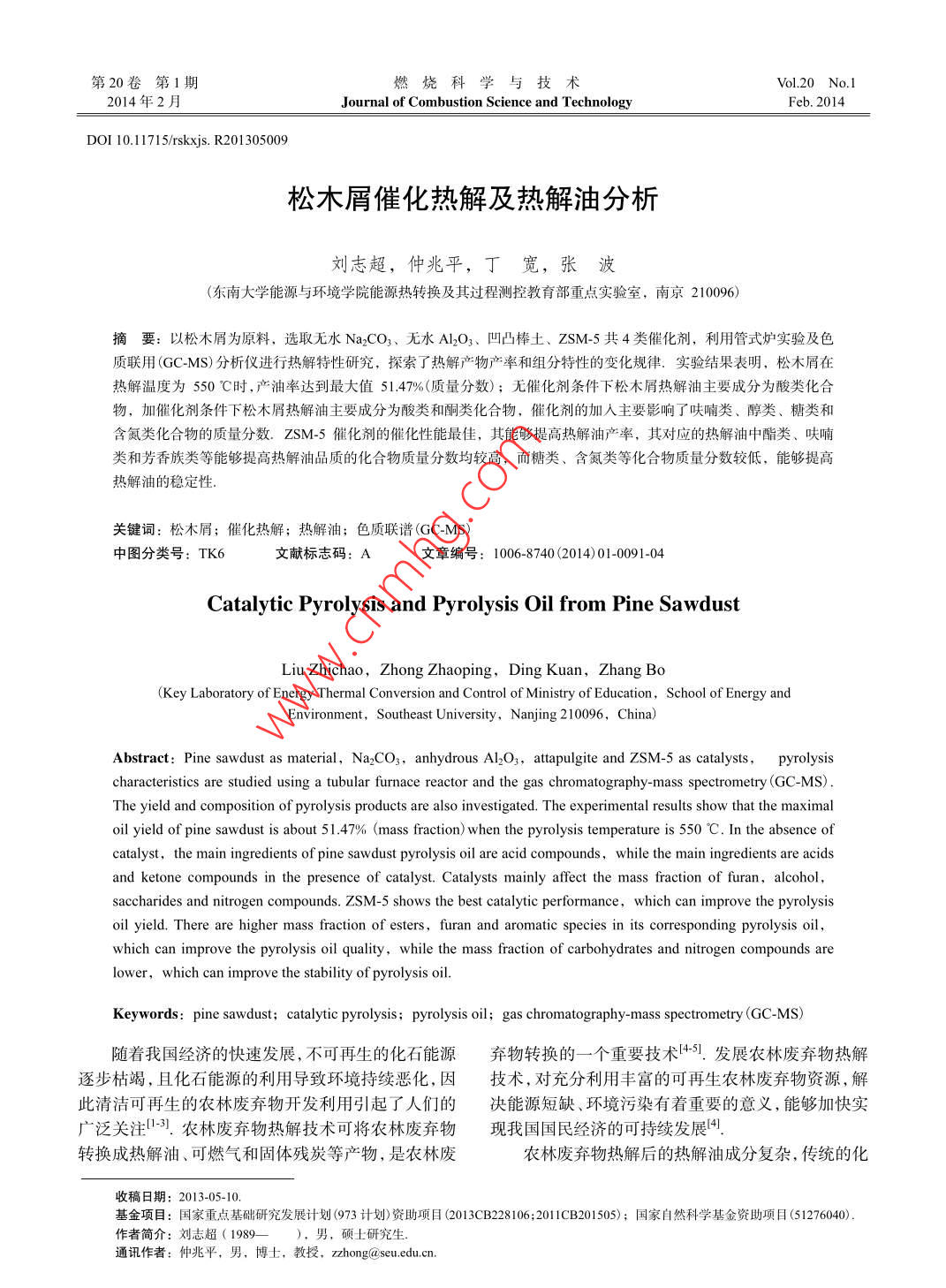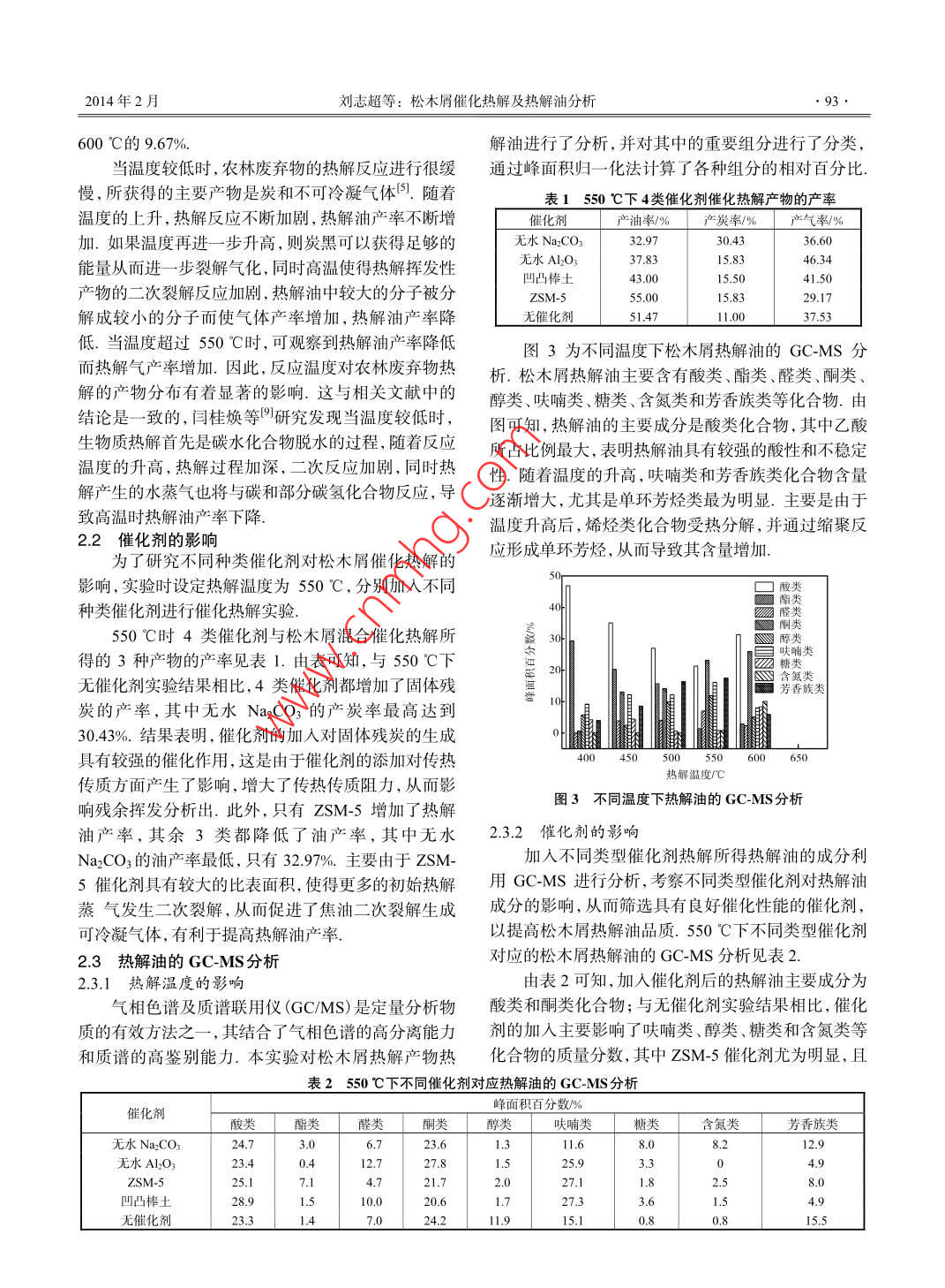 松木屑催化熱解及熱解油分析