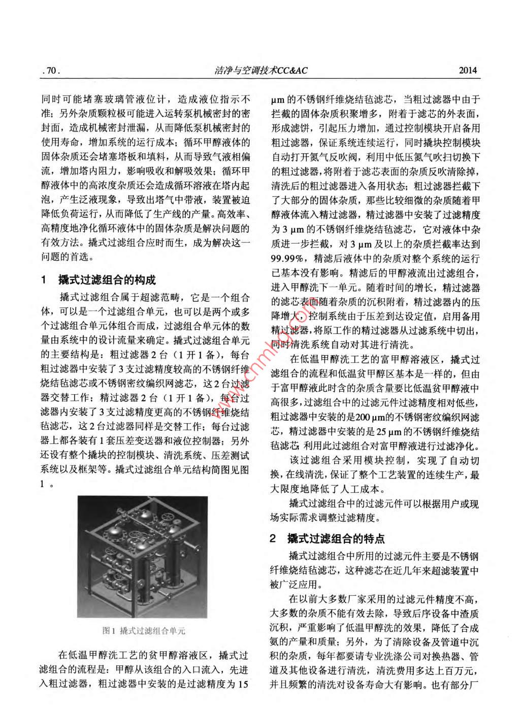 撬式過濾組合在低溫甲醇洗工藝中的應用探討