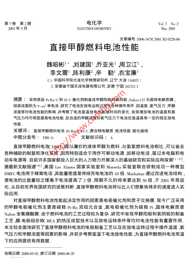 - 作者單位:中國科學(xué)院大連化學(xué)物理研究所,,安徽省寧國天成電器有限公司,