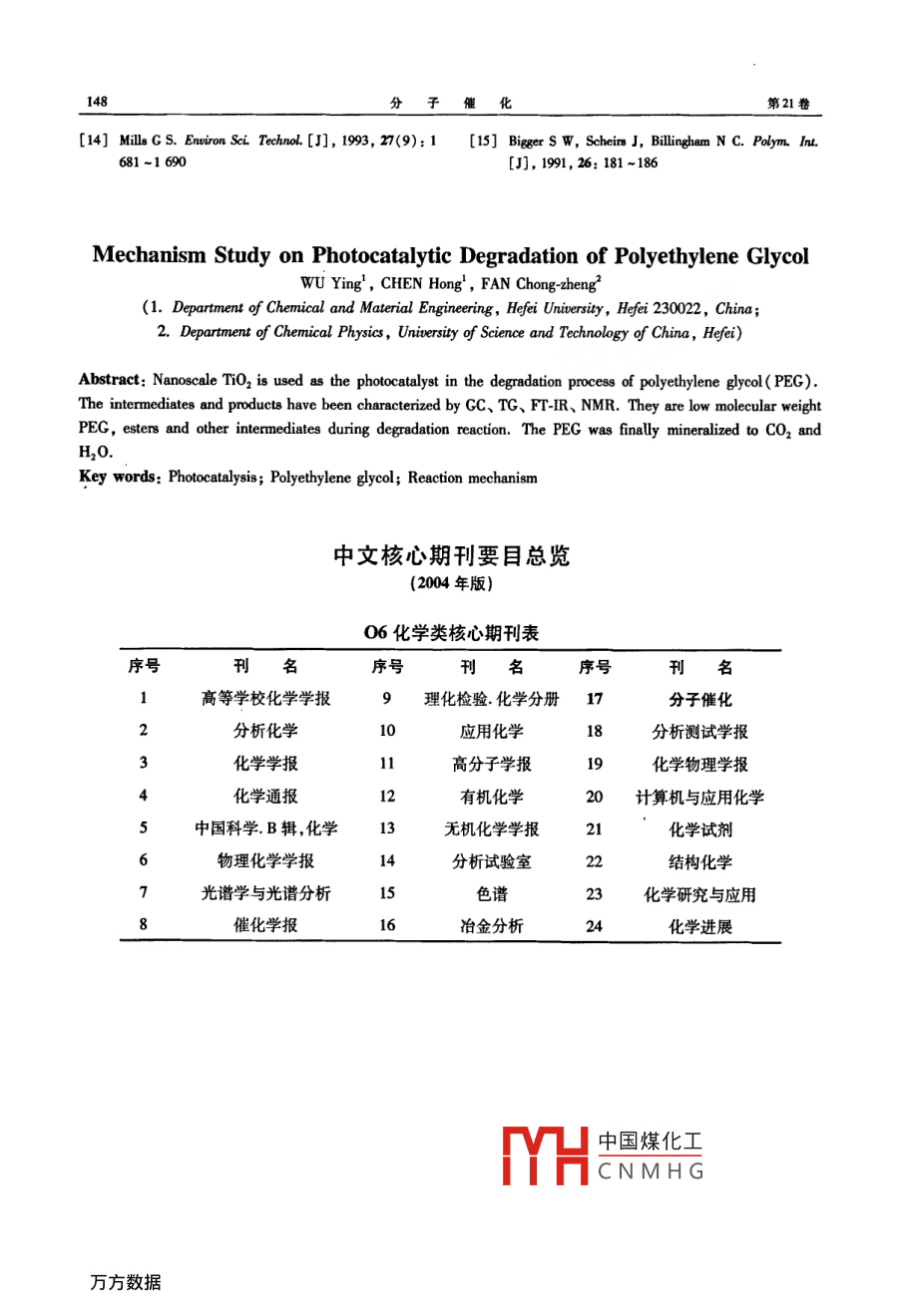 光催化氧化降解聚乙二醇的機(jī)理研究