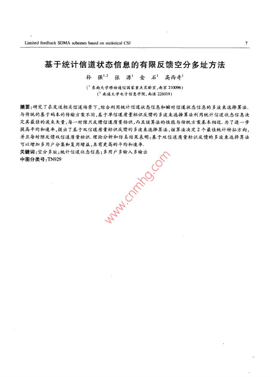 基于統(tǒng)計信道狀態(tài)信息的有限反饋空分多址方法