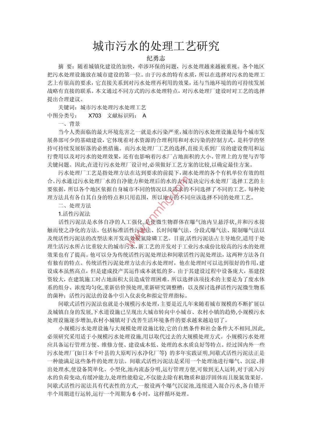 城市污水的處理工藝研究